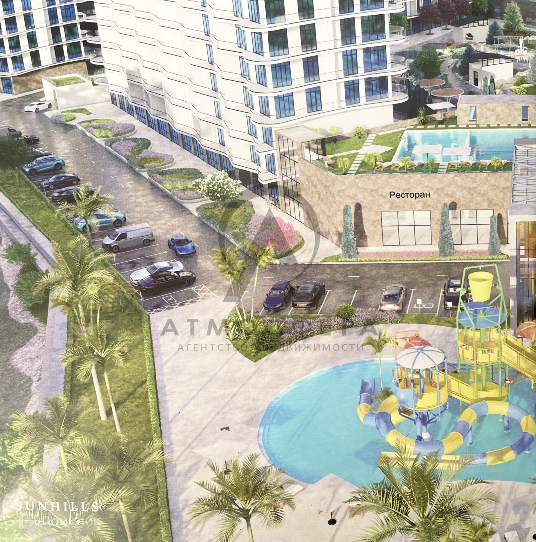 Комплекс расположен в 12-15 мин не спешного шага от набережной с Ольгинка, на территории ЖК расположено все необходимое для комфортного проживания: магазины, кафе, фитнес-клуб, детские и спортивные площадки, зоны отдыха с уютными беседками, парковою зону, открытый бассейн, подземный паркинг и многое другое для вашего комфорта.