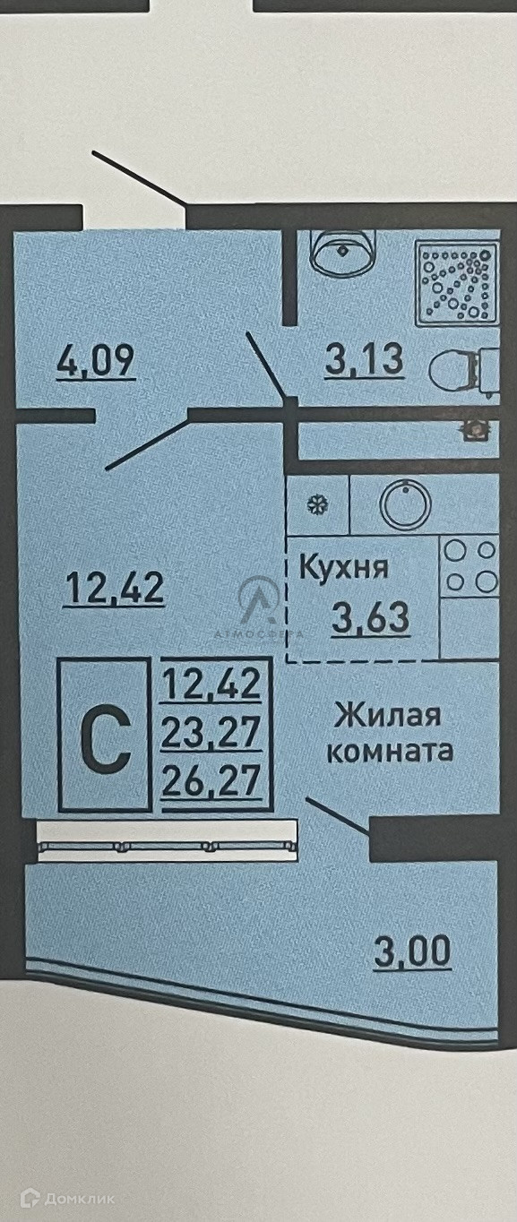Общая площадь 26.27 м2