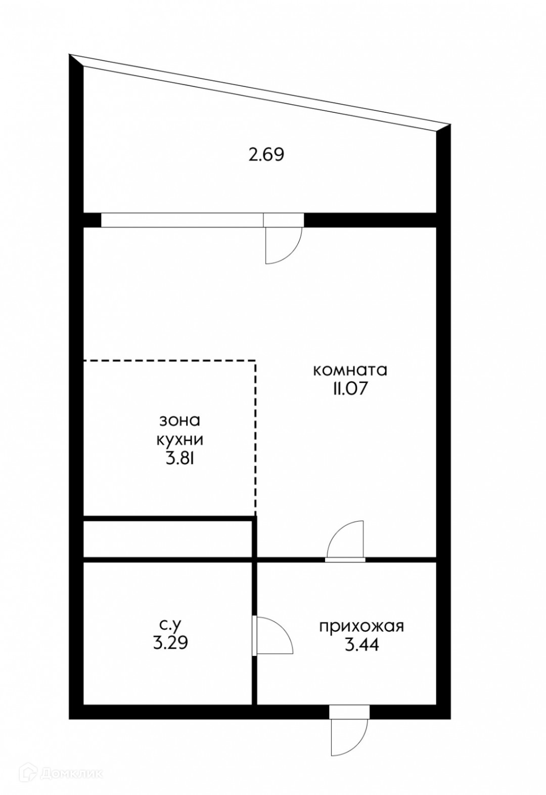 Общая площадь 22.1 м2