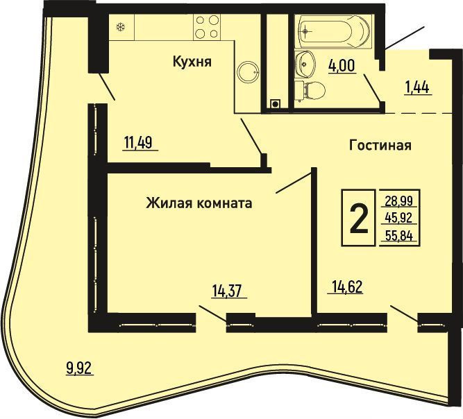 Общая площадь 55.8 м2