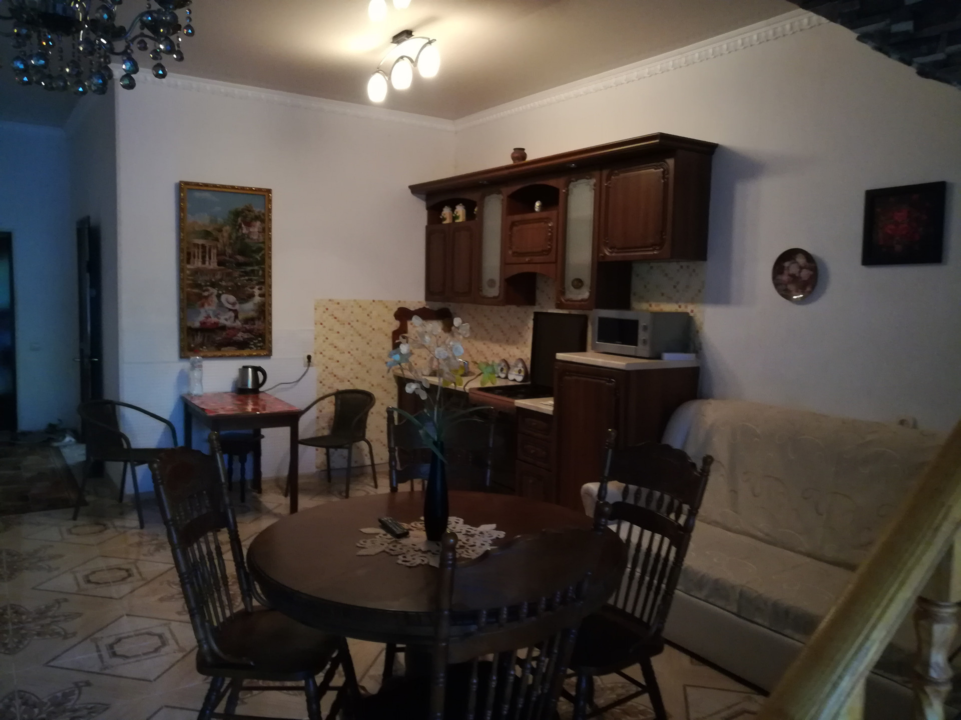 Большой таунхаус на берегу моря, в с.Ольгинка, улица Восточная. 4 спальни, 2 санузла, 5 сплит систем, плэн отопление, большая гостиная, совмещенная с кухней.Земля в собственности, прописка. Во дворе терраса, летняя кухня и дворик. До моря 300 метров, до центрального пляжа 10 минут пешком.