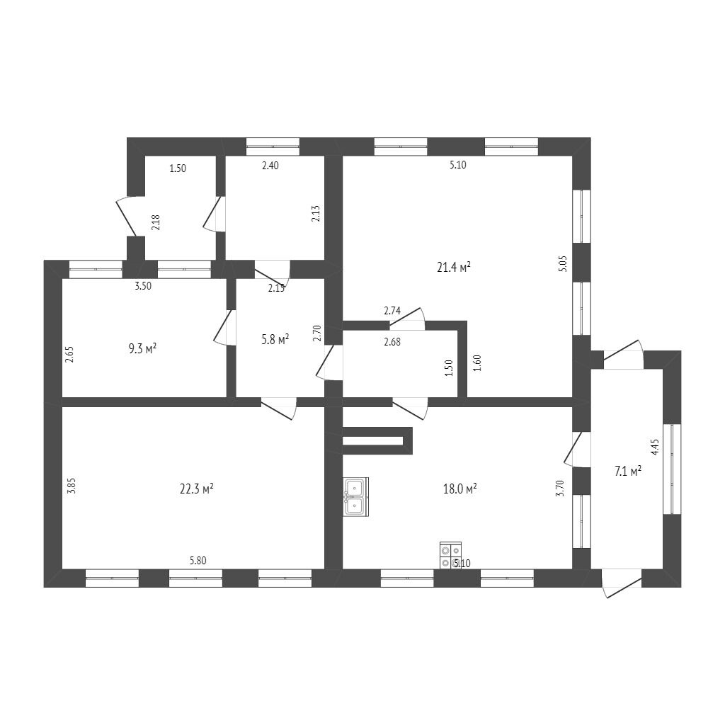 Общая площадь 80.8 м2