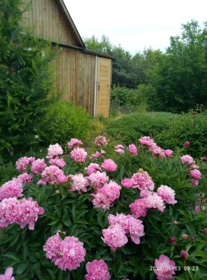 Один участок с дачным домиком (10 м 2), хоз. постройками, туалетом. Проведен летний водопровод, вода с мая по середину сентября каждый день. Электричество круглогодично. Все посадки.