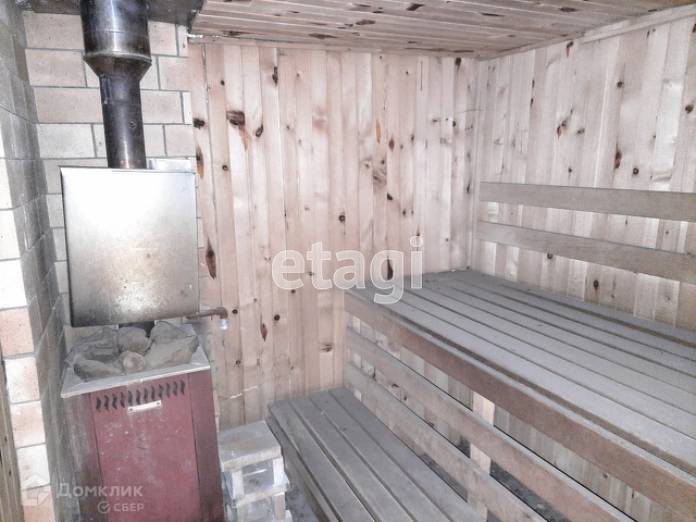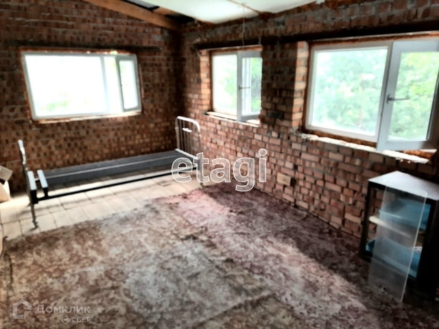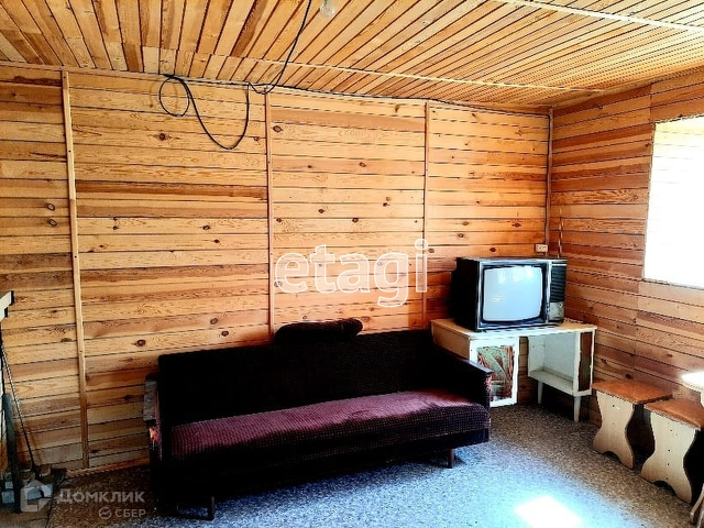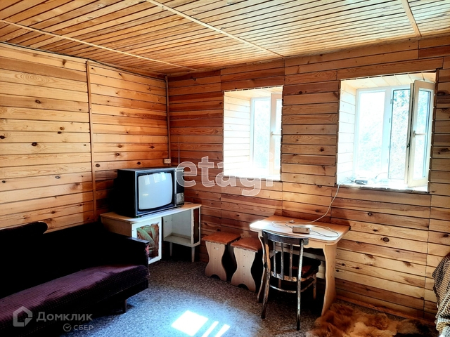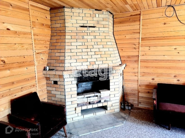 На участке расположен двухэтажный жилой дом, общей площадью 79,2 кв. м. Оформлен в собственность. Электричество - круглый год. Дом построен из бруса, утеплен, обложен кирпичом. Комната на первом этаже обшита вагонкой из натурального дерева (сосна), на полу - линолеум. Окна ПВХ. Дом отапливается камином. Также на первом этаже имеется небольшая кухонная зона.