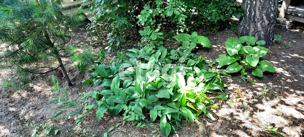 Участок обработан: посажены плодоносные деревья - сливы, яблони, груши, вишни, черная и красная смородина, ирга, жимолость, малина, калина, черемуха. Также высажены сосны, кедры, ель, липа, орех, дуб, березы, сирень трех видов.