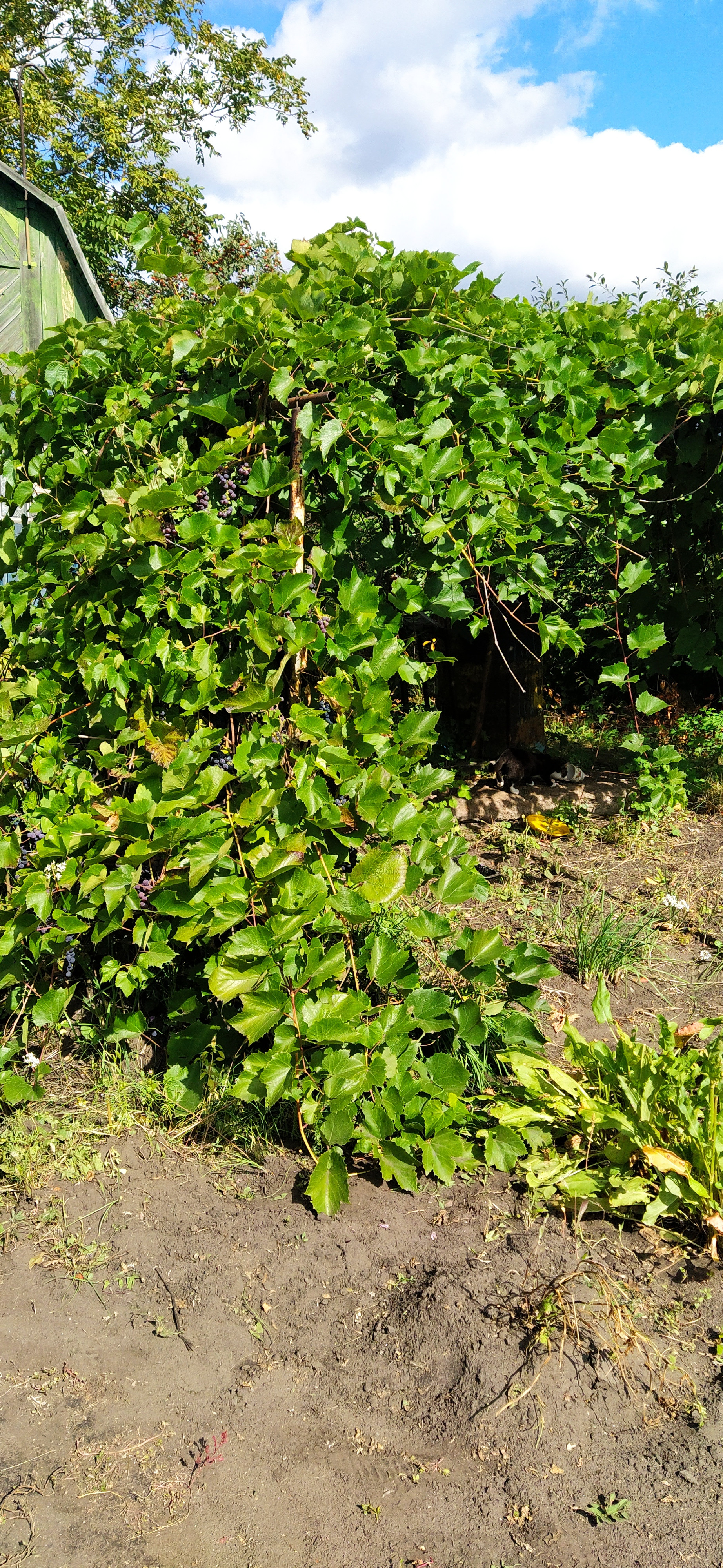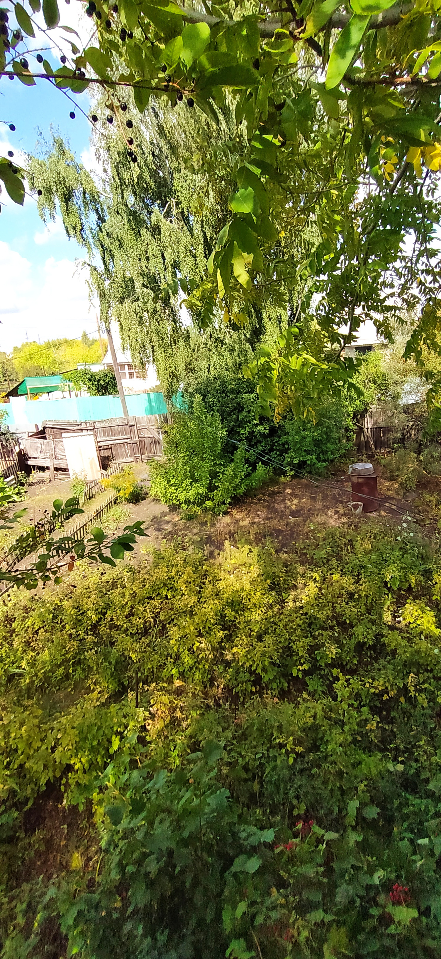 Хватит места и для отдыха под кронами деревьев в летнюю жару и для шашлычной зоны,и для любимого авто и для бахчи,а виноградная лоза уже с богатым урожаем .