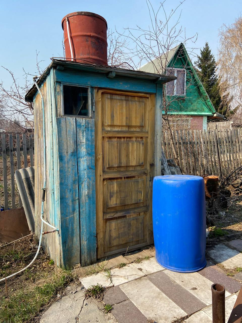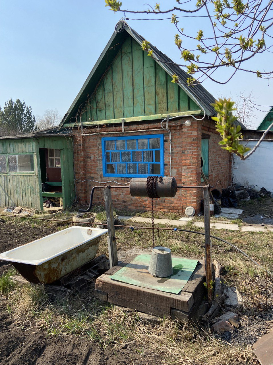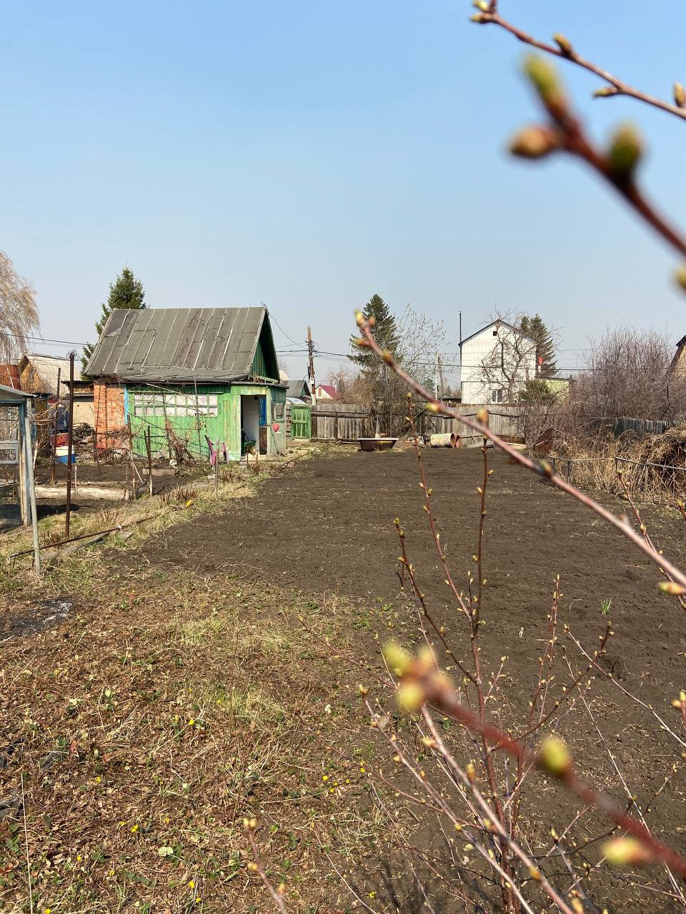 На участке электричество, летний водопровод, колодец, теплица, хоз. постройки.