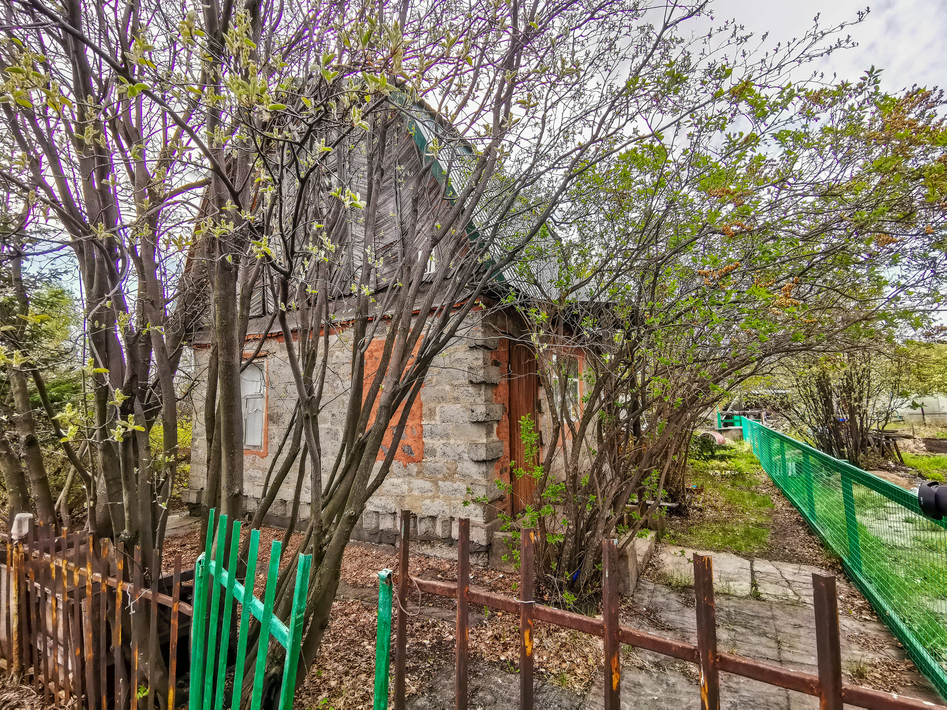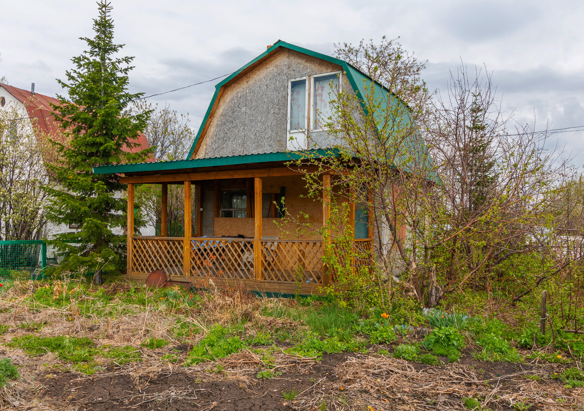 На земельном участке 5 соток есть садовый двухэтажный дом с прекрасной террасой. Крыша дома из профлиста. В доме есть печь.