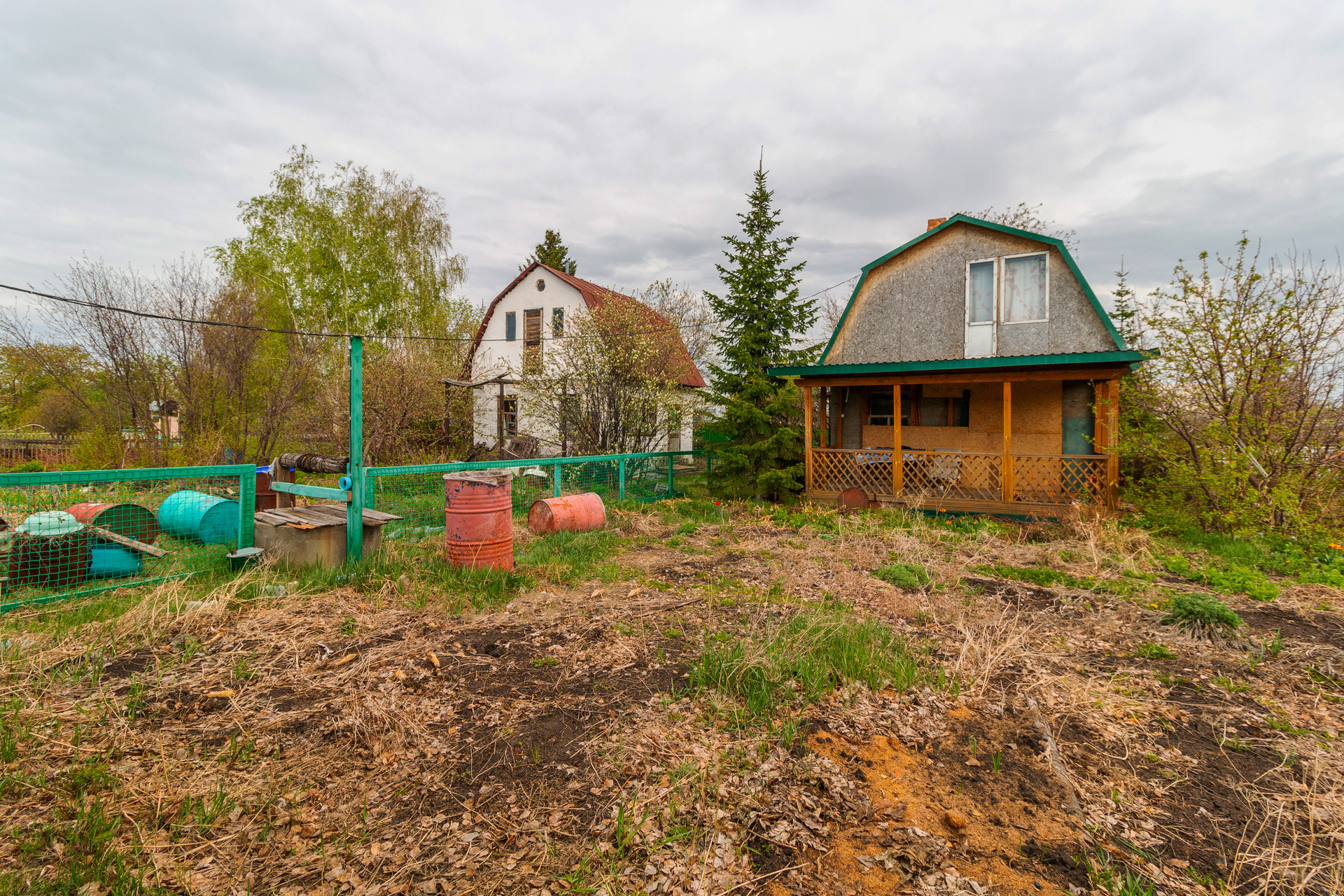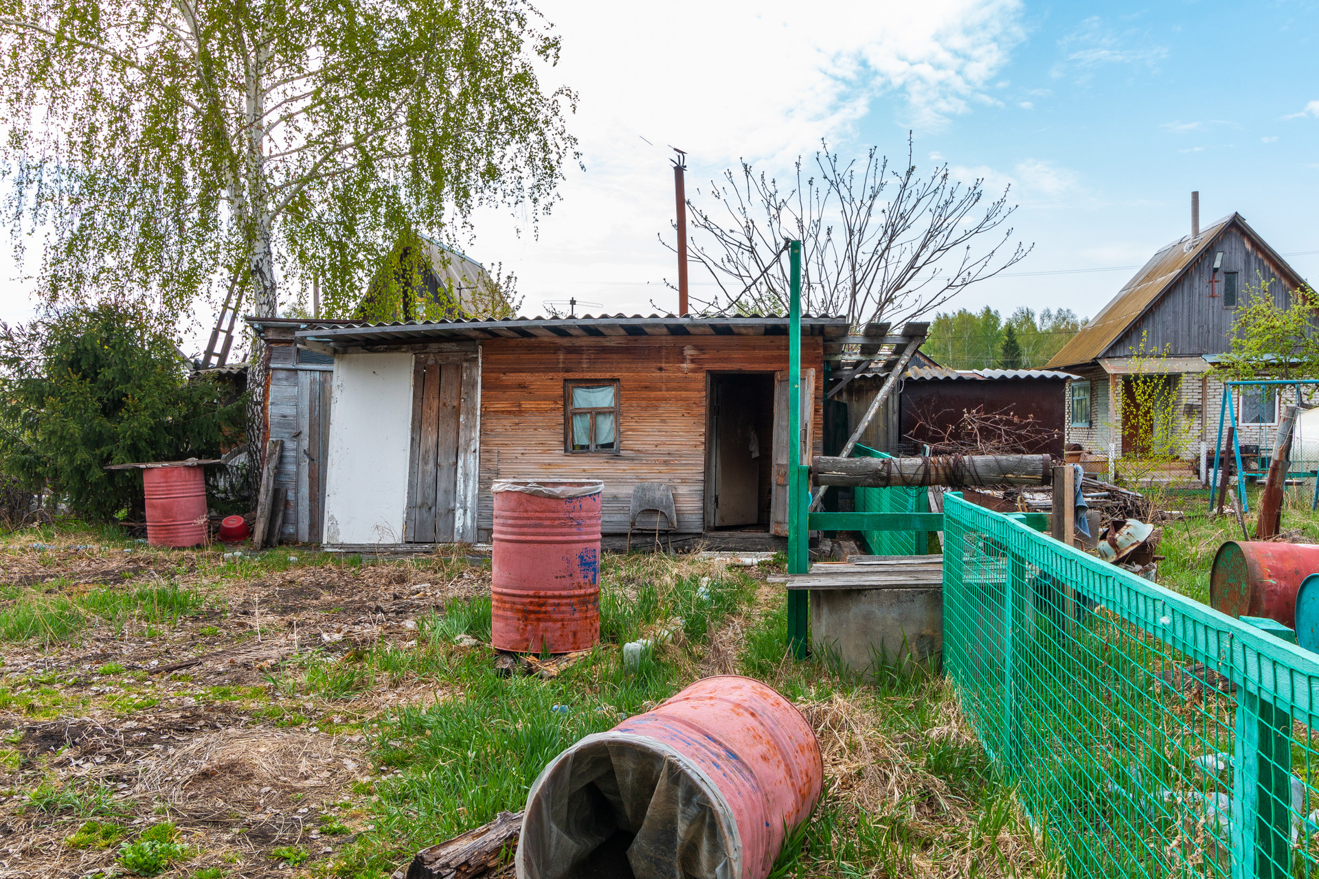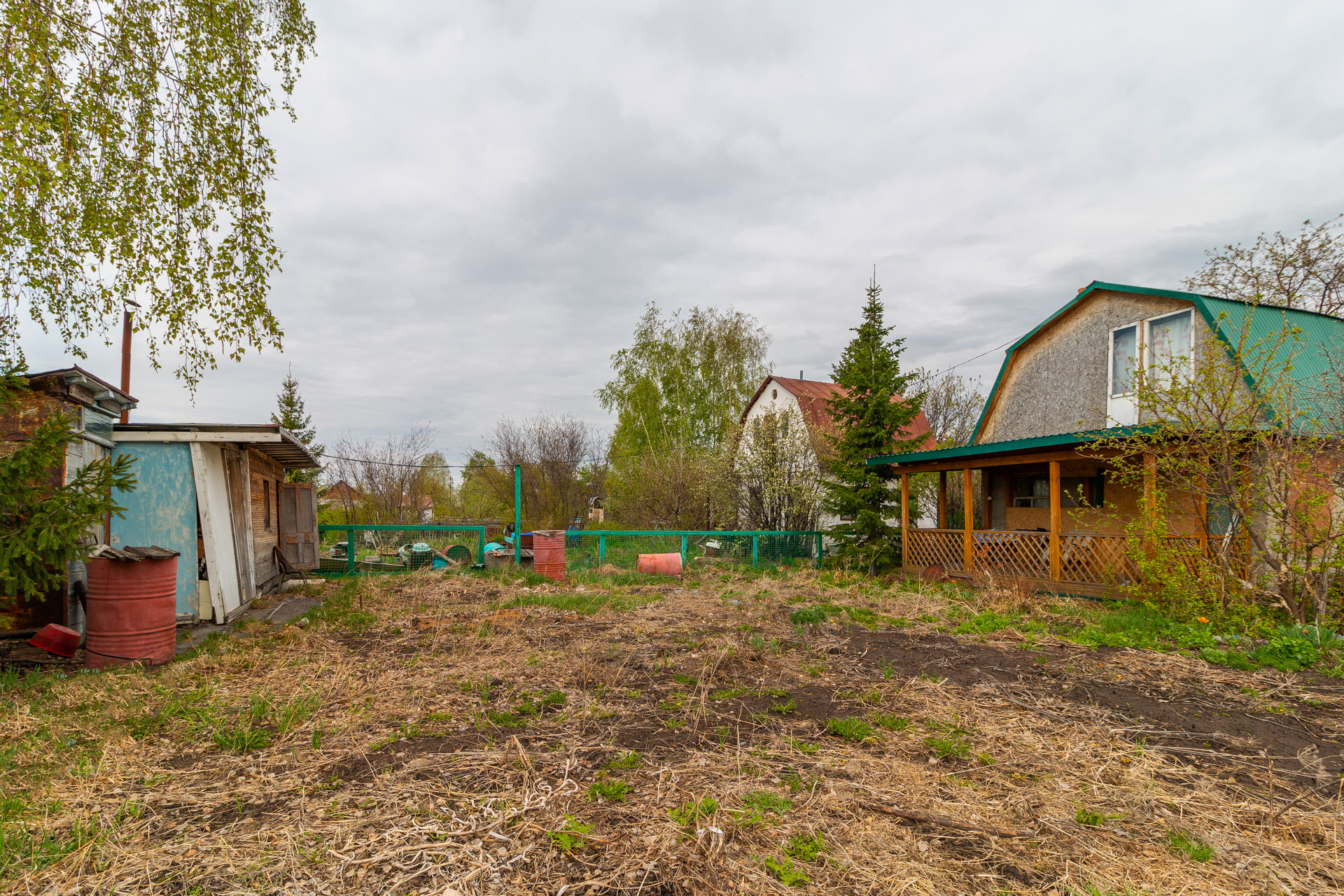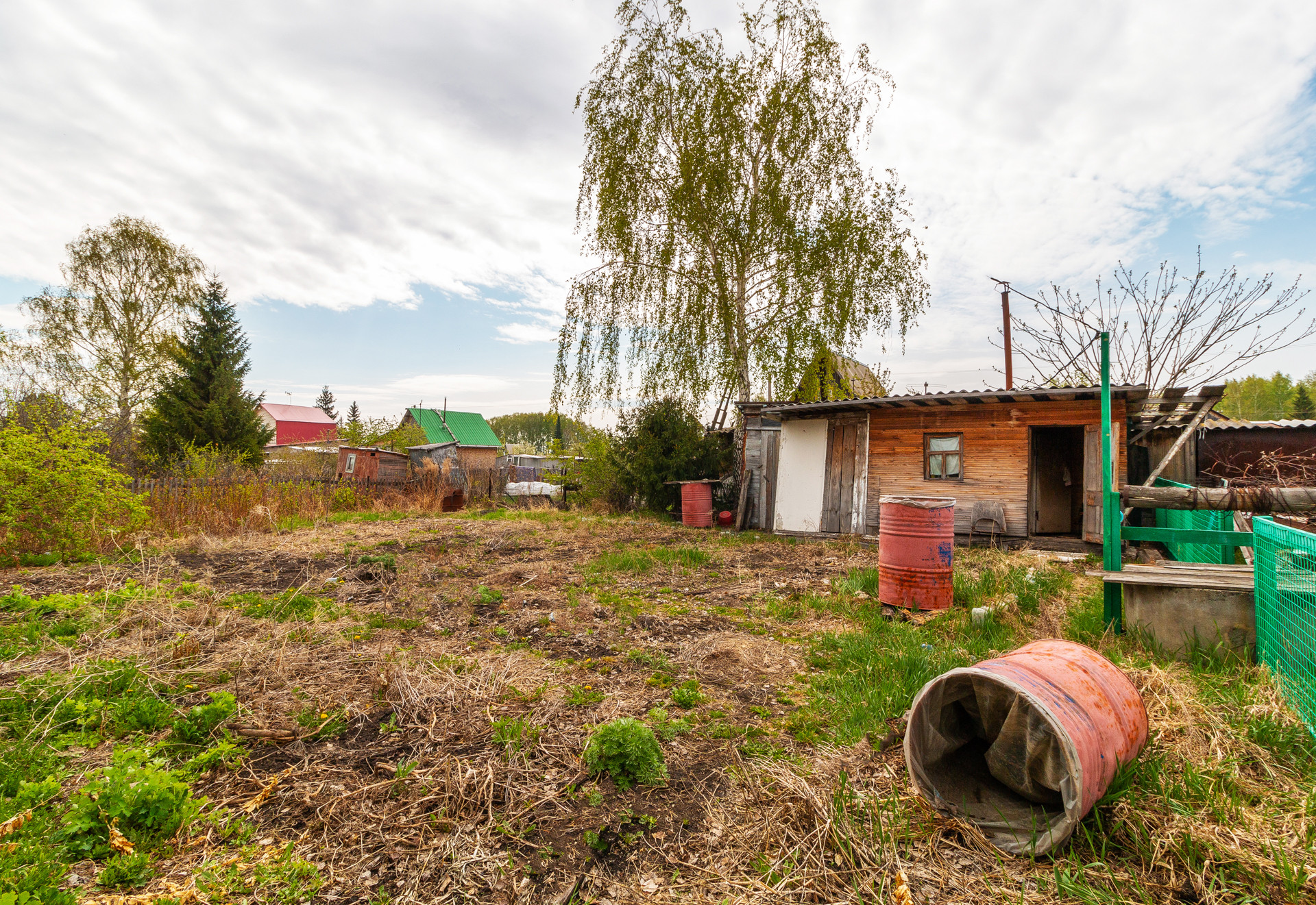 На участке колодец, баня, сарай, туалет, 3 бочки под воду