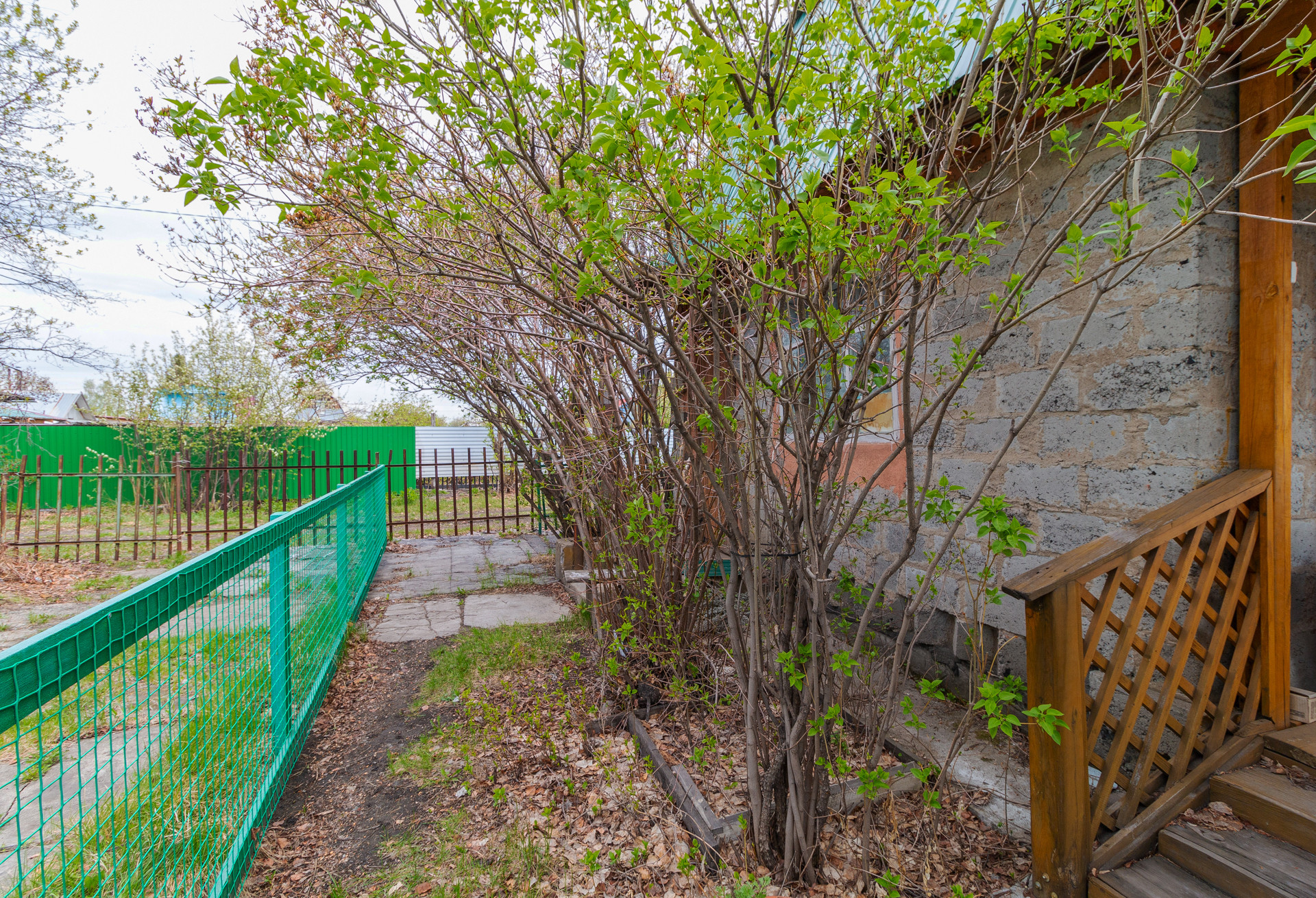 (2 яблони, вишня, жимолость, малина, смородина, береза, пионы, тюльпаны, сирень белая и фиолетовая, рябина и ели т. Д)