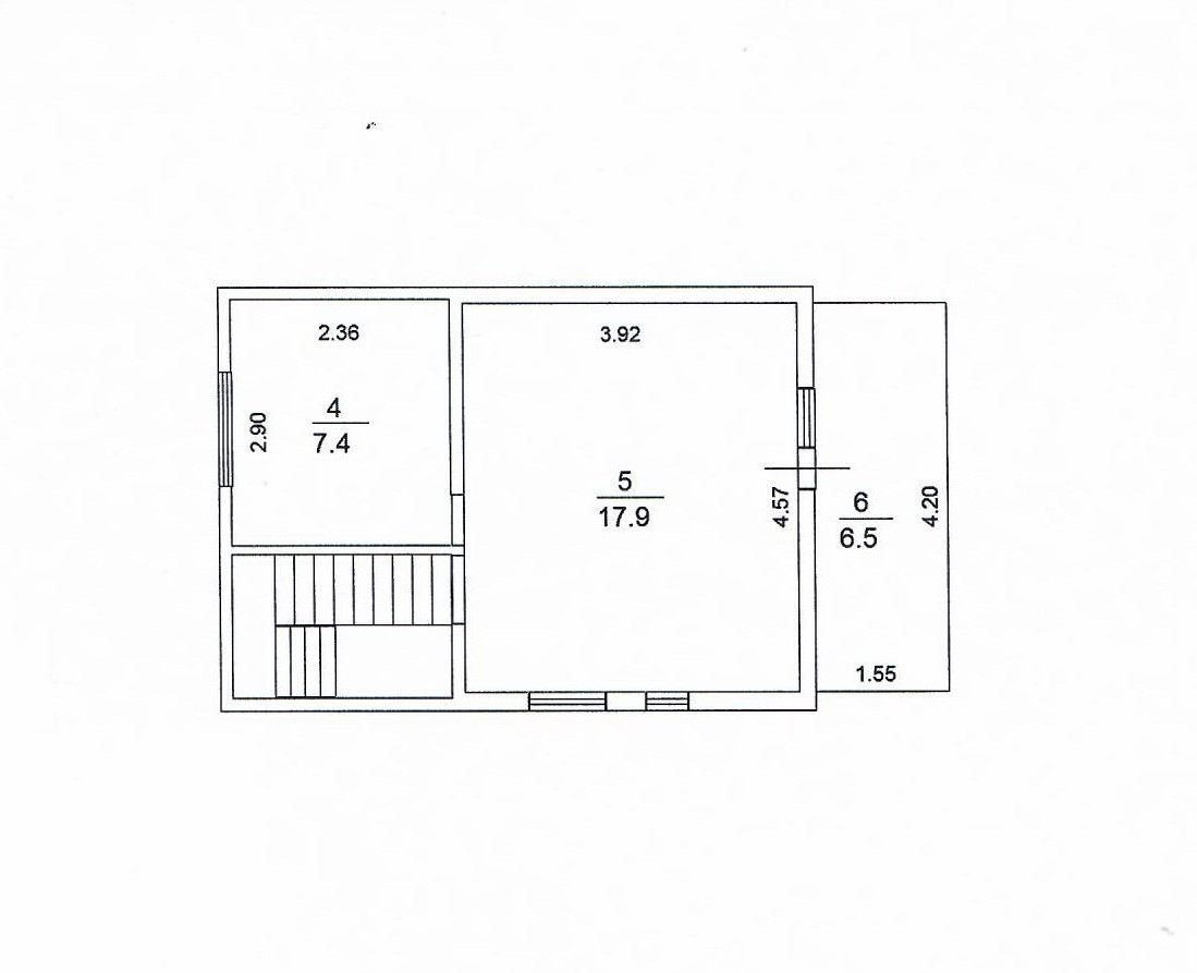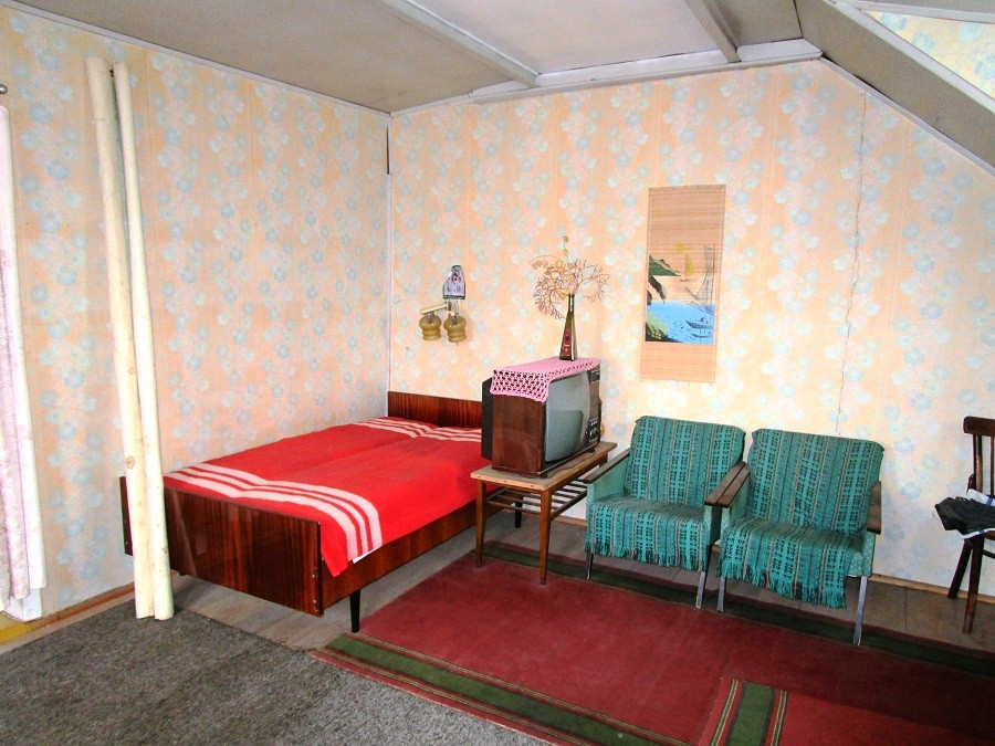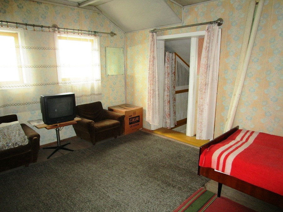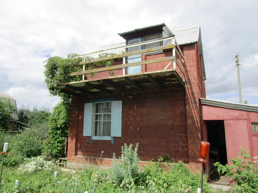 Дом кирпичный, основательный, 2000 года постройки. Качественный фундамент, (имеются отдушины для вентиляции), перекрытия из металлических балок, крыша из листового алюминия. На первом этаже комната и кухня, на втором этаже две спальни. Из одной спальни выход на балкон площадью 6,5 кв.м. Удобная, некрутая лестница.