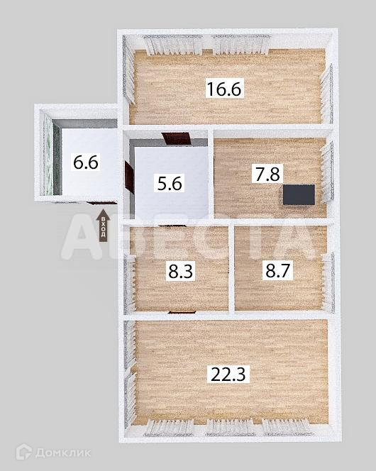 Жилая площадь 55.9 м2