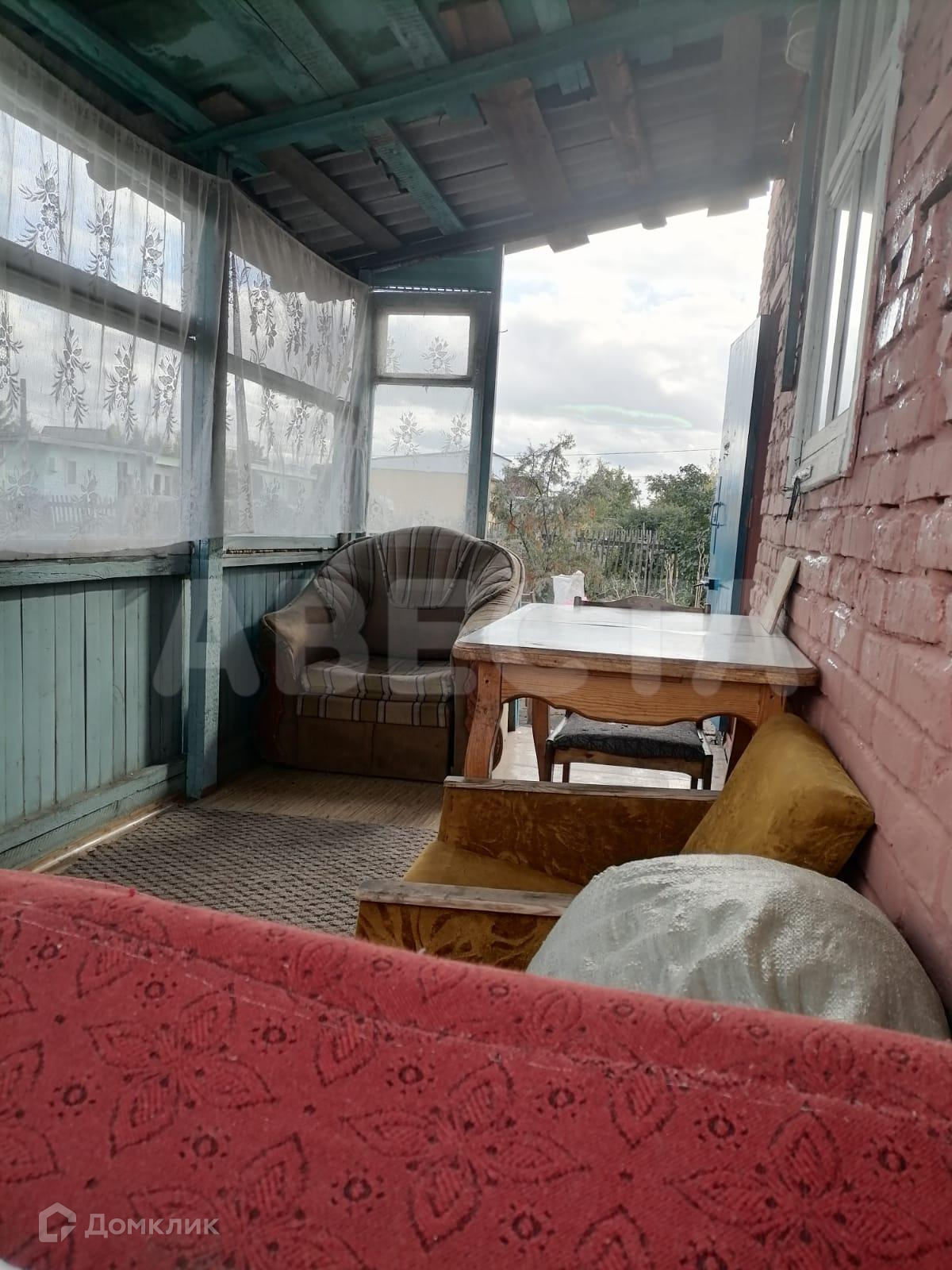 На территории стоит уютный кирпичный домик с мансардой на втором этаже. К дому пристроена большая веранда. Также есть отдельно стоящая веранда (крыша покрыта ондулином, подведено электричество). Туалет на улице, есть летний душ с водонагревом. Забор по аллее из профнастила (между соседями штакетник). Электричество заведено в дом, водопровод летний.