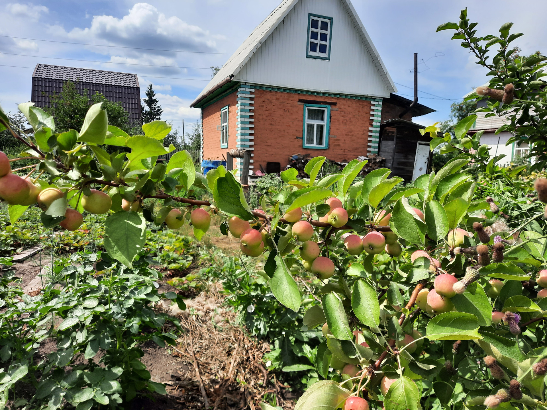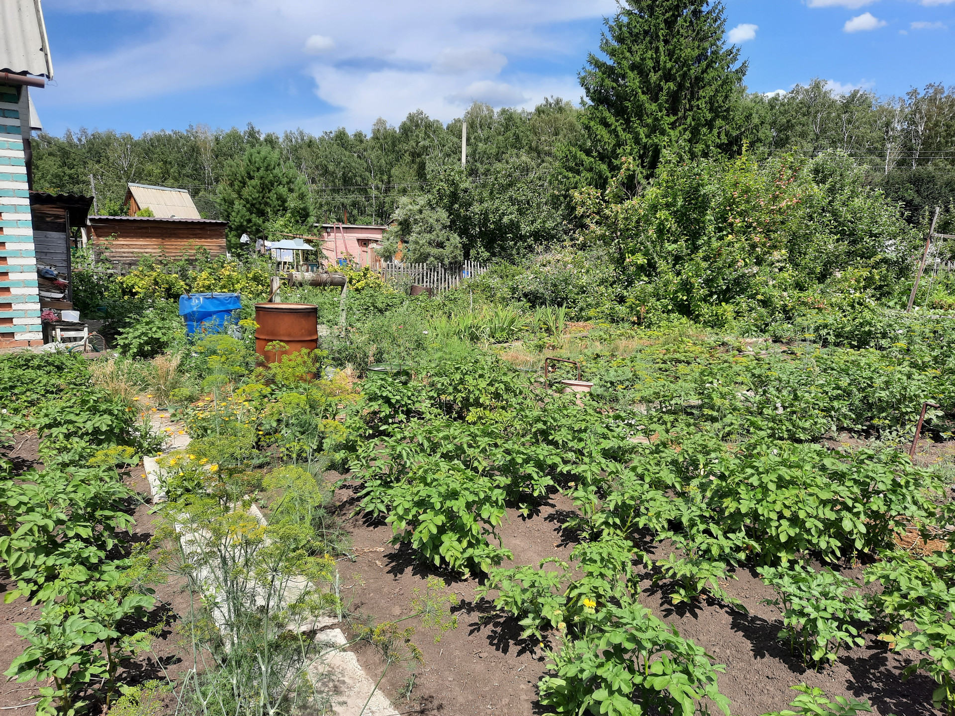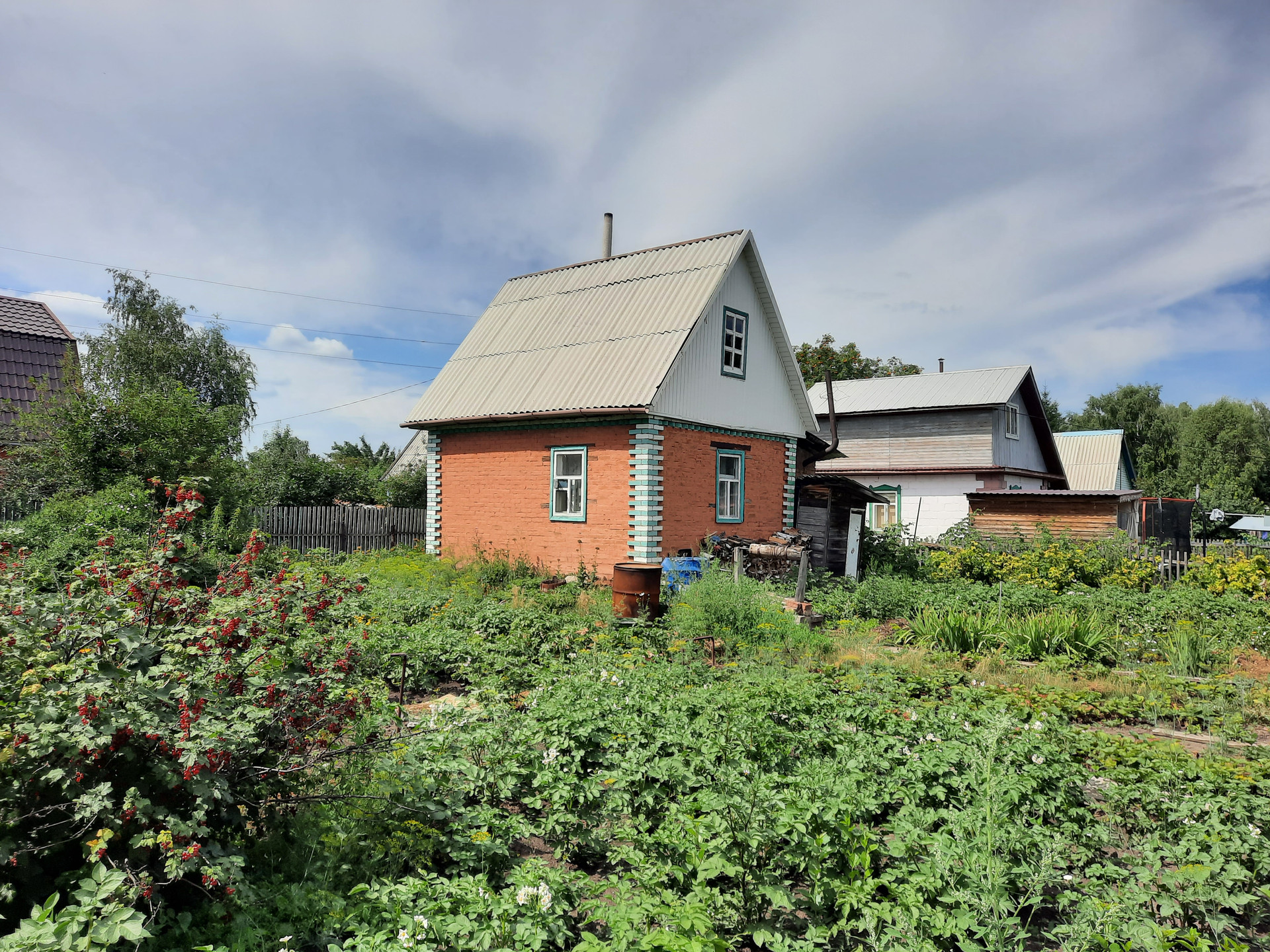 Посадки 4 яблони разного срока созревания,  вишня 2х сортов, земляника, малина, смородина черная и белая, крыжовник, ирга, калина, жимолость.