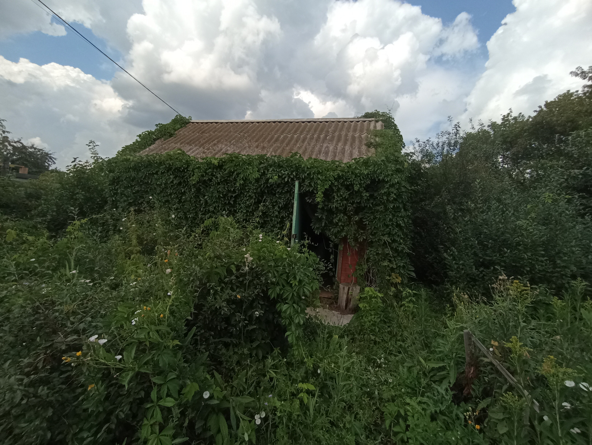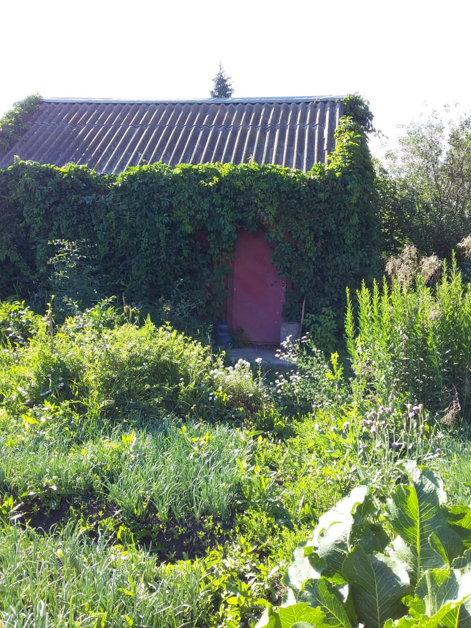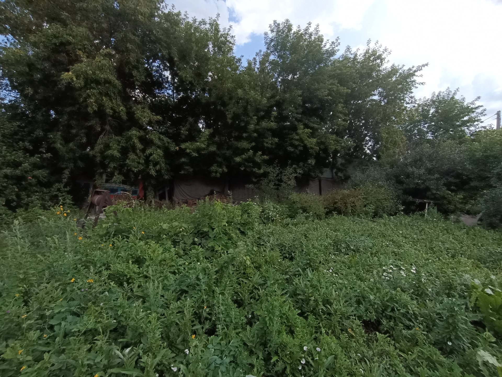 Посадки: жималость, яблони, вишня, облепиха, крыжовник разные сорта, малина, смородина, виноградный куст, пионы.