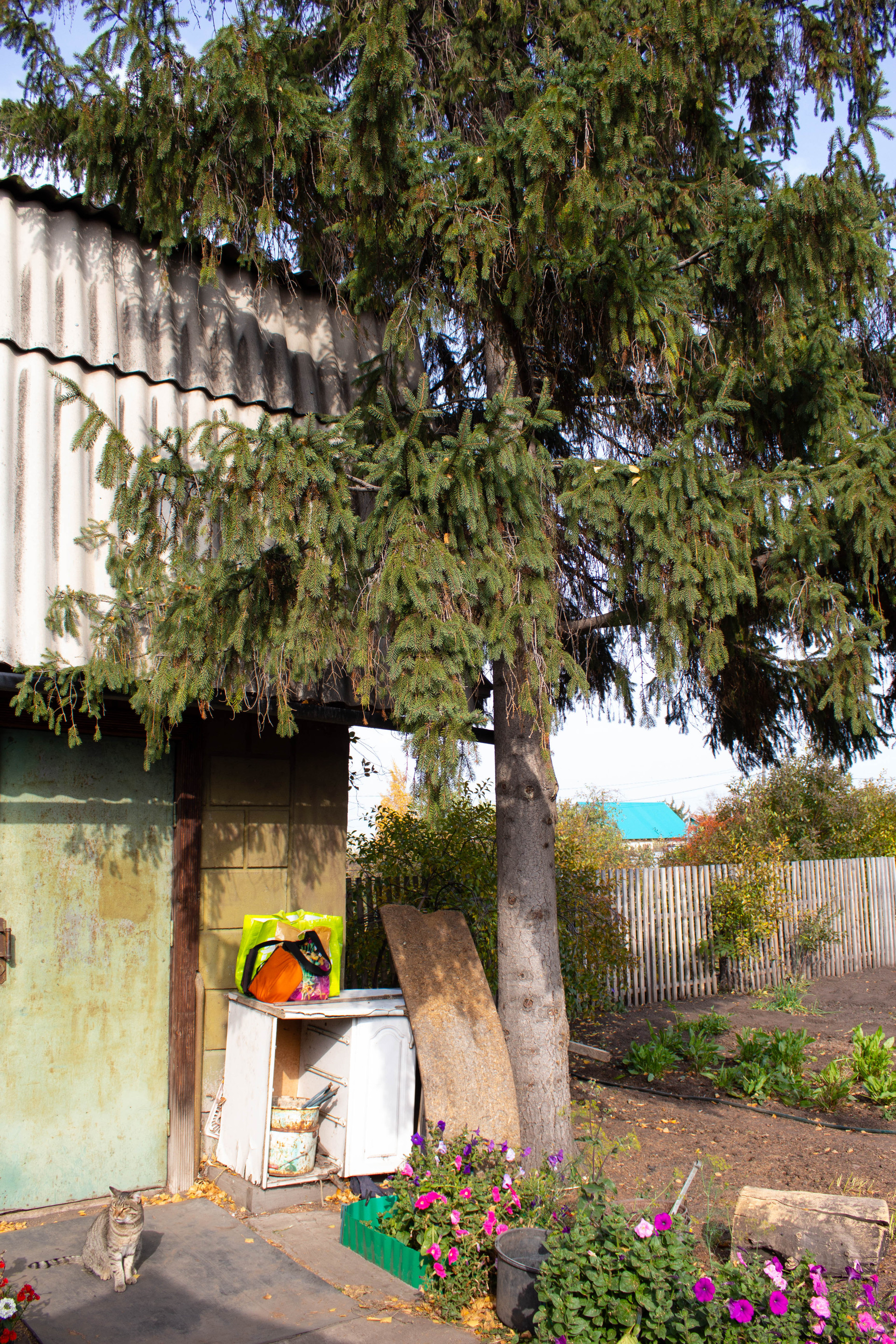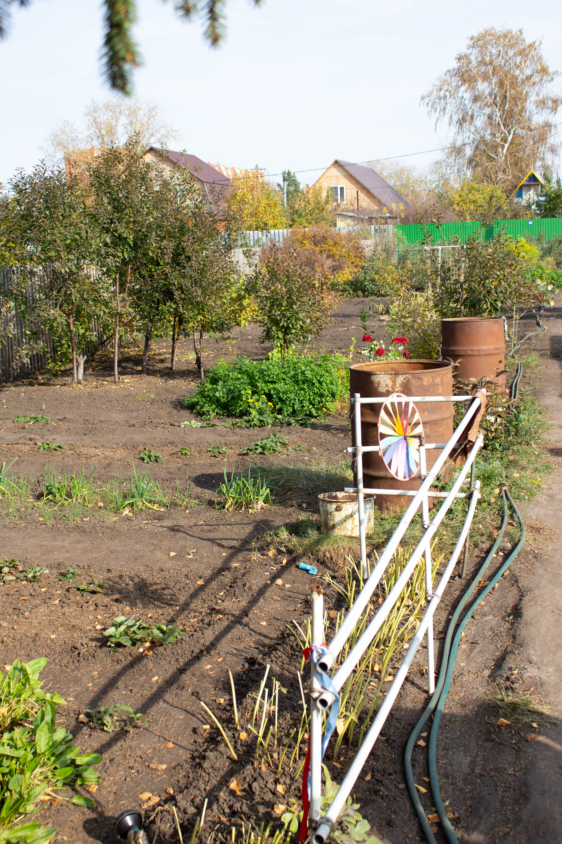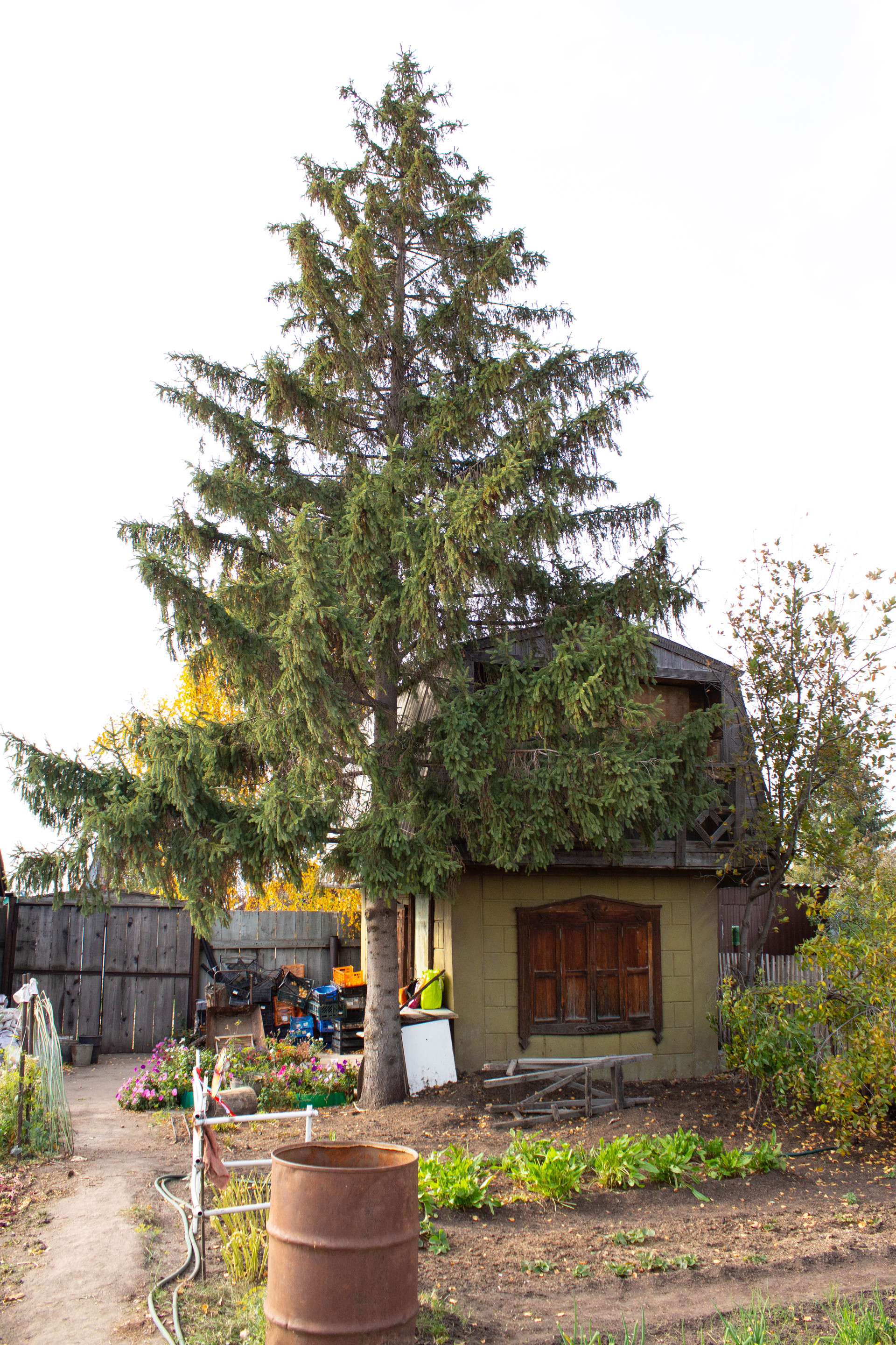 За забором огромная емкость-бочка для воды.
