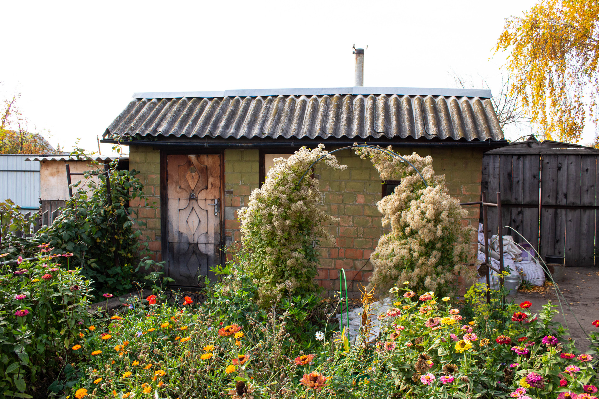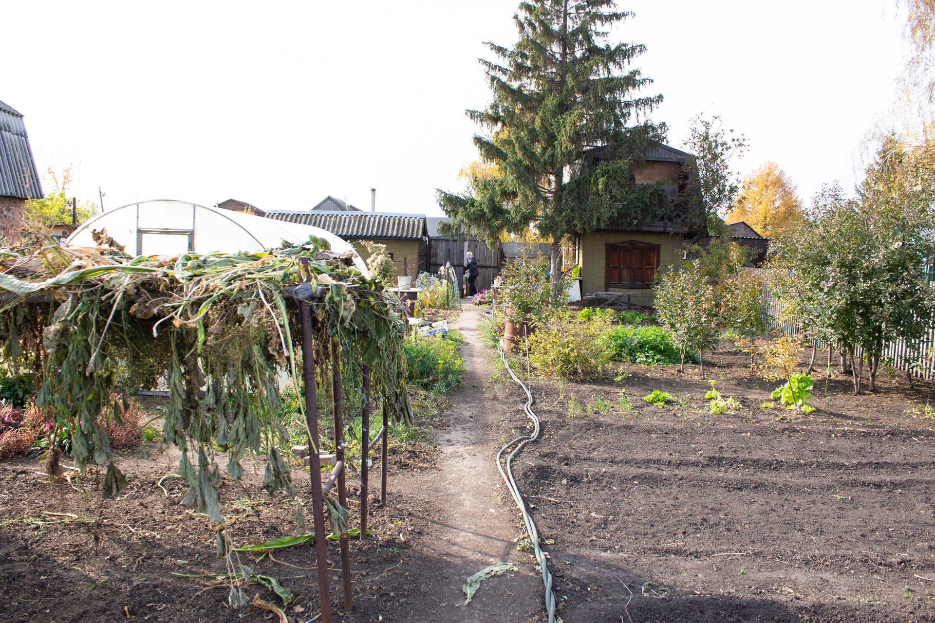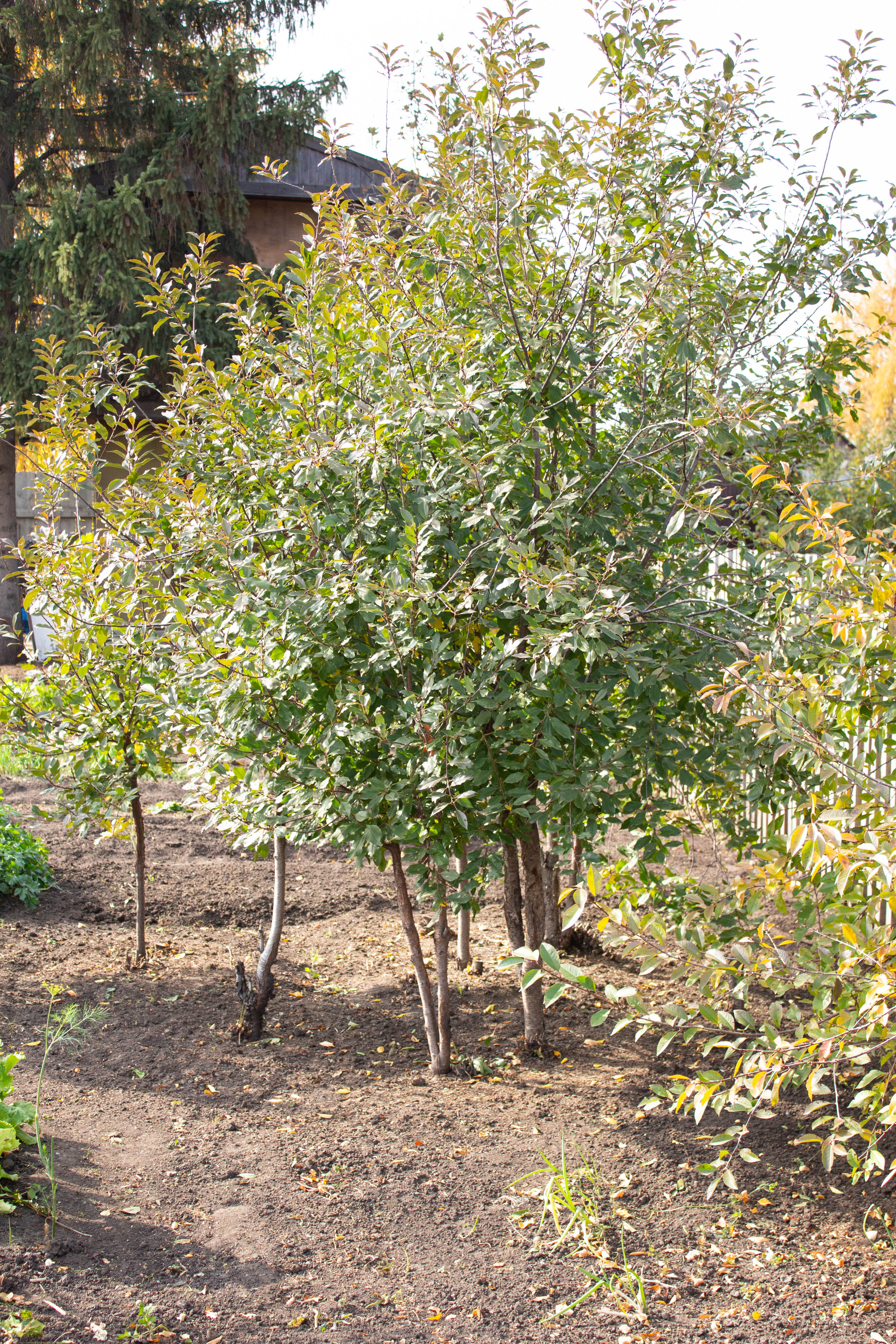 На участке 4 стелющиеся яблони, с крупными сладкими яблоками. Кусты смородины, малины, крыжовника, жимолости. Вишня, виноград.