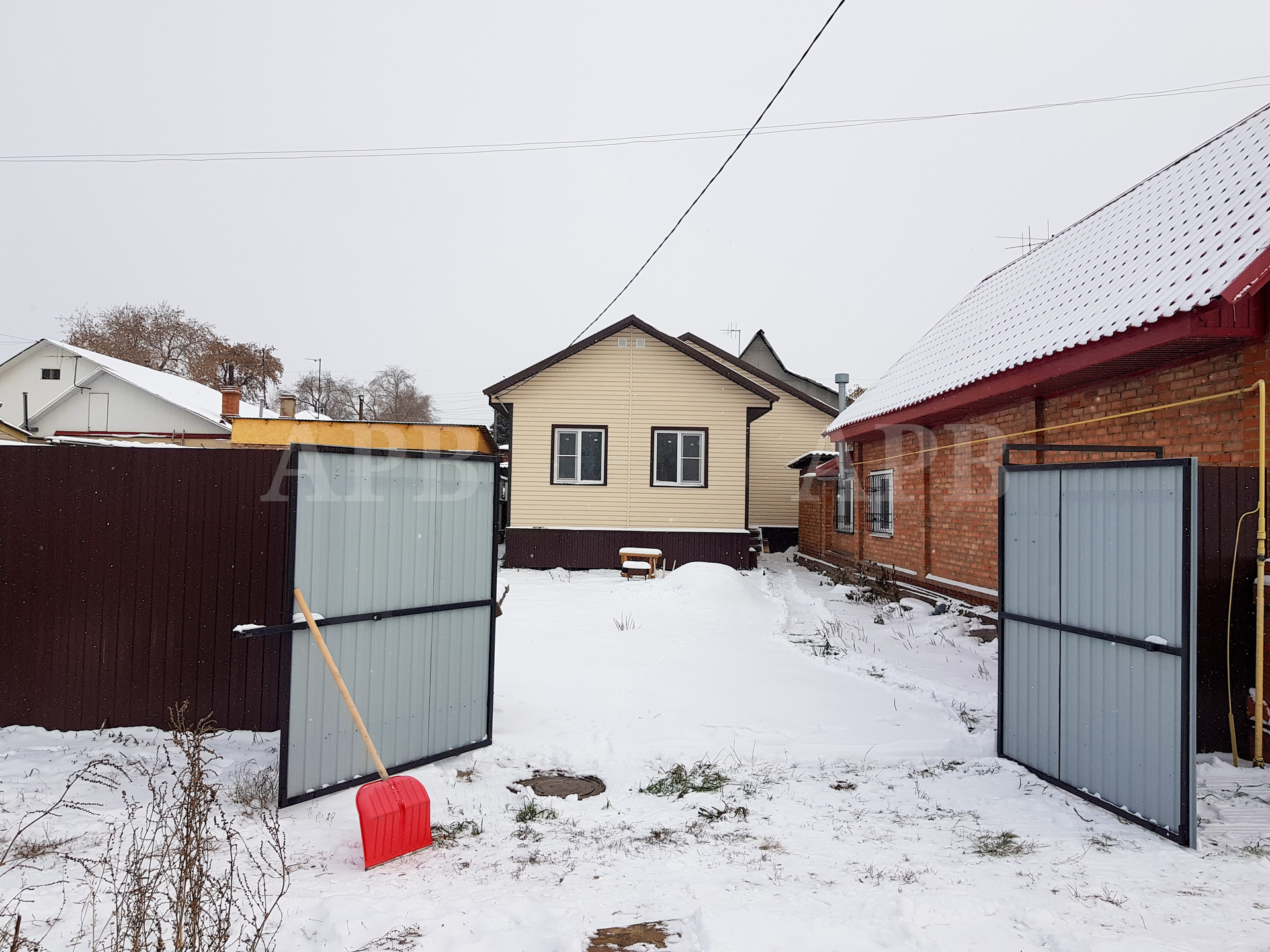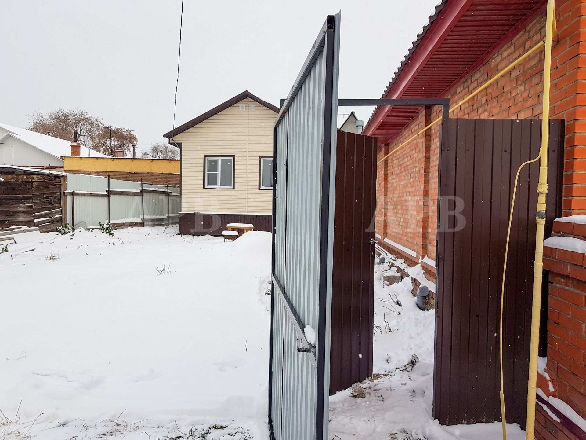 Ворота: профнастил, калитка отдельно, открывается наружу. Сделали осенью 2023.