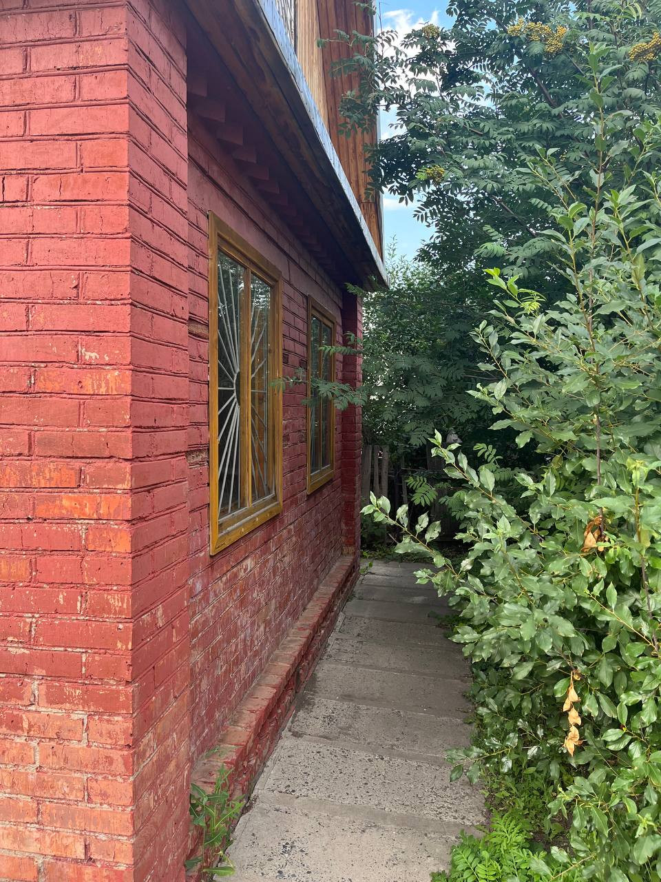 Кирпичная Баня состоит из 3 комнат(парилка, душевая, комната отдыха) меблирована, железная дверь и открытая веранда, площадка для автомобиля и дорожки по всему участку выложены плиткой.