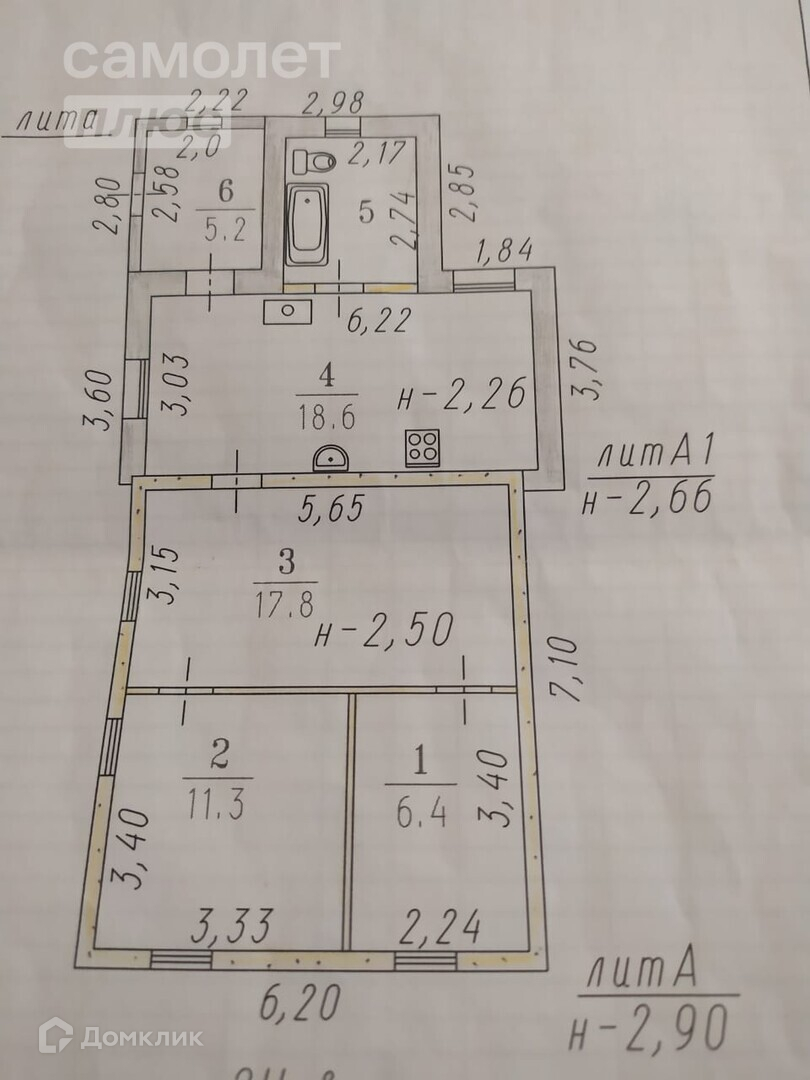 Высота потолков 2.6 м