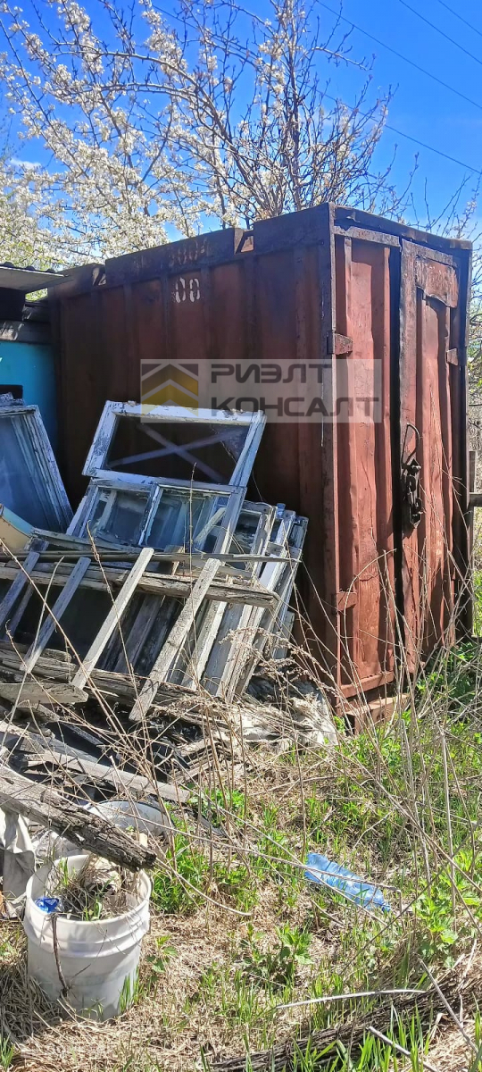 На участке уже имеются несколько полезных построек, включая баню и хозяйственный блок площадью 30 квадратных метров. Также на территории установлена металлическая ёмкость для воды объёмом 5 кубометров и ёмкость для безопасной ликвидации мусора. Для занятий садоводством предусмотрена теплица, а также имеется большой огород под посадки.