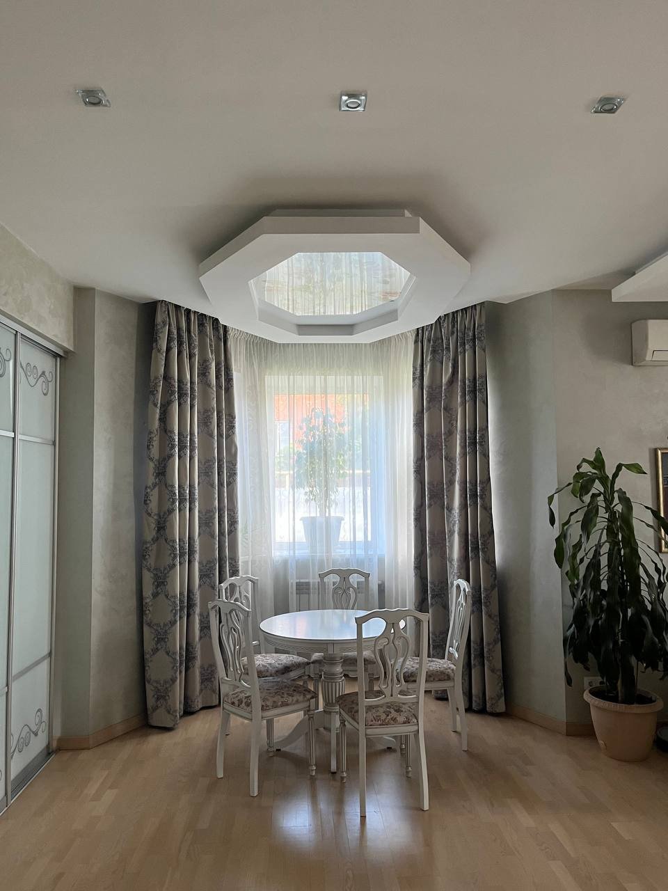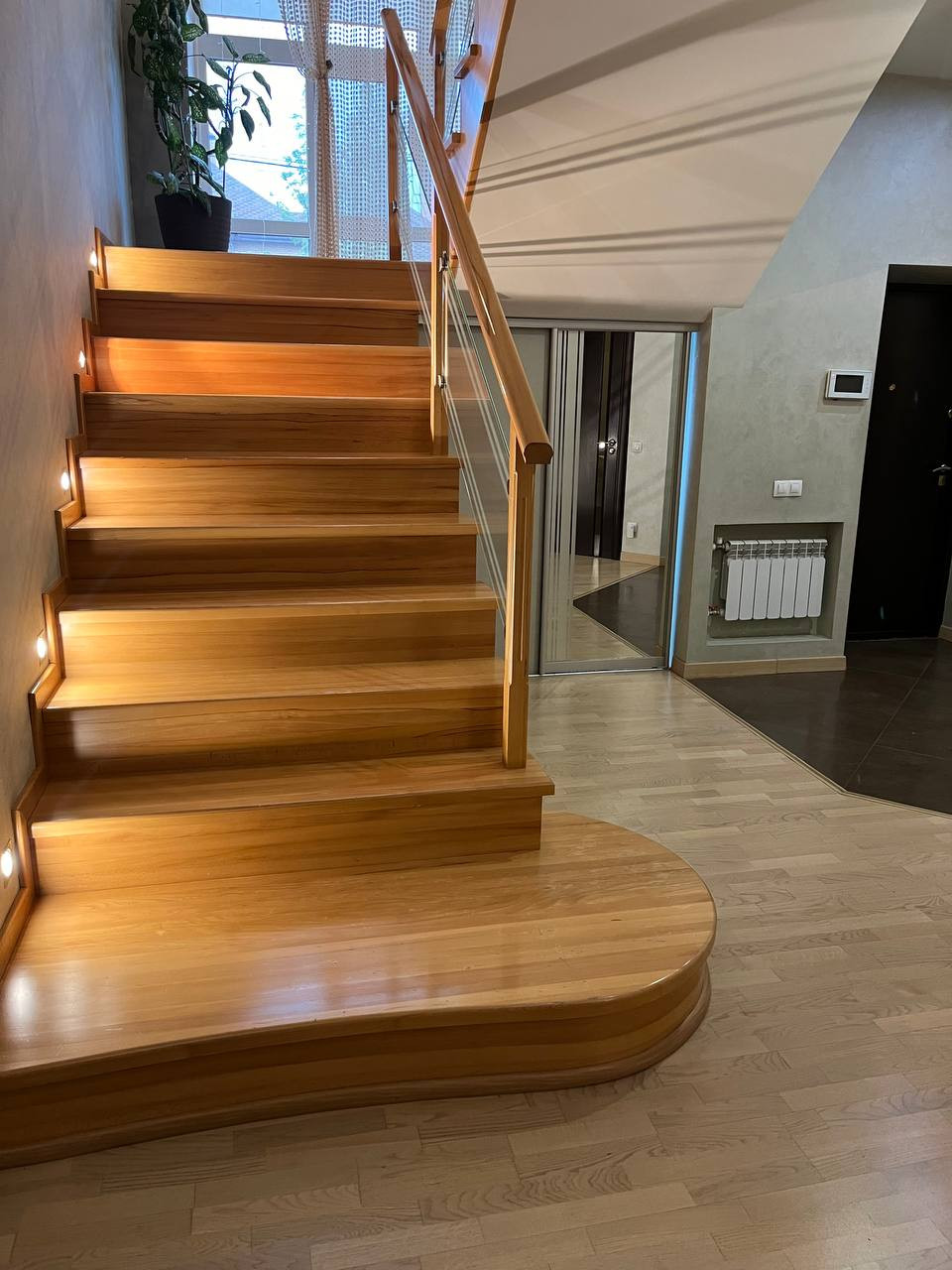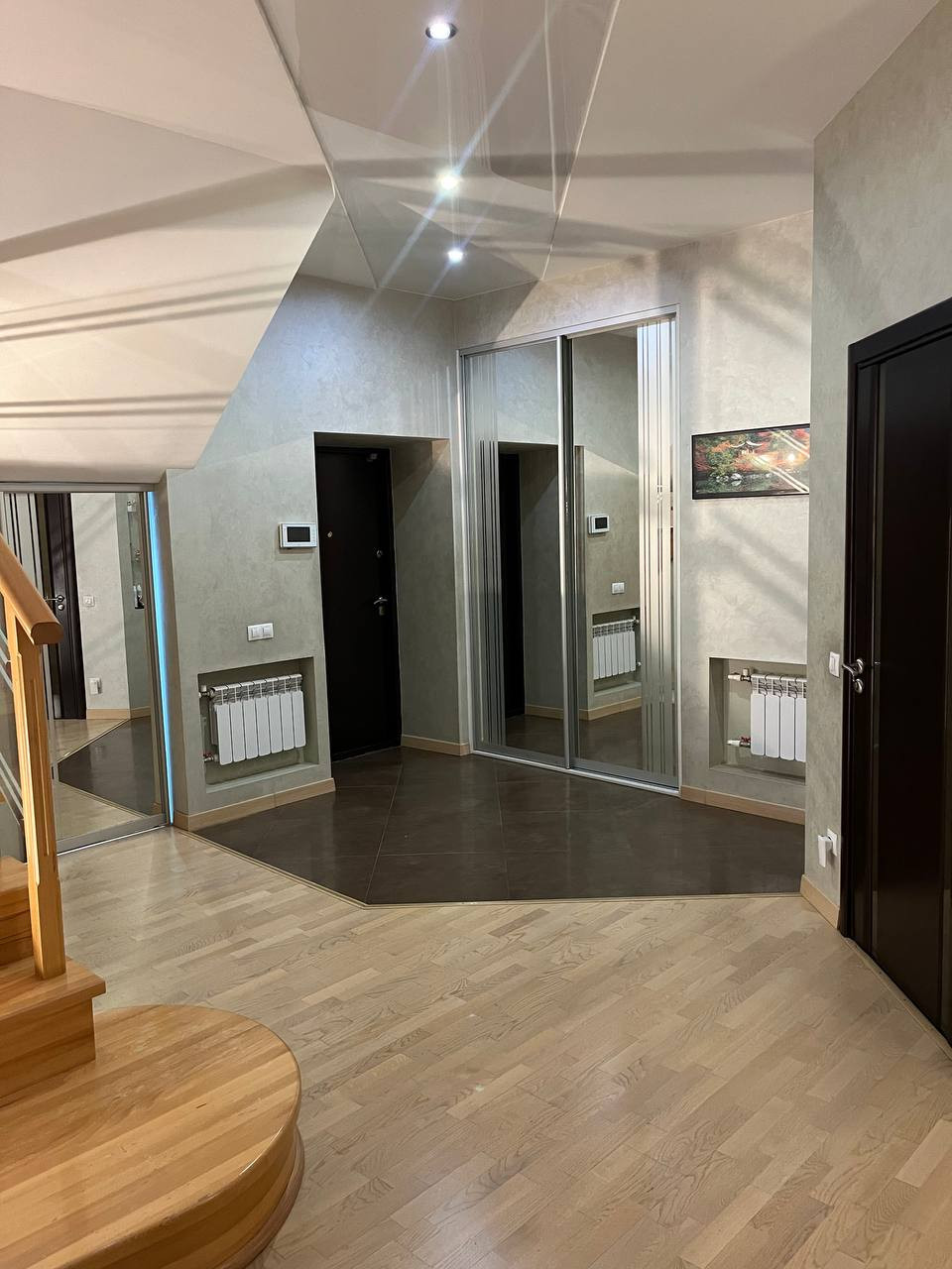 На 1этаже расположены: большой зал, кухня со встроенной кухней Марией, холодильник LG side-by-side с льдогенератором, встроенная п/мойка, варочная поверхность, духовой шкаф, теплый пол в кухне, также имеется гостевая комната, гостевой санузел с душевой кабиной. Отдельный вход в котельную. Установлен газовой котел Saunier Duval F 35.