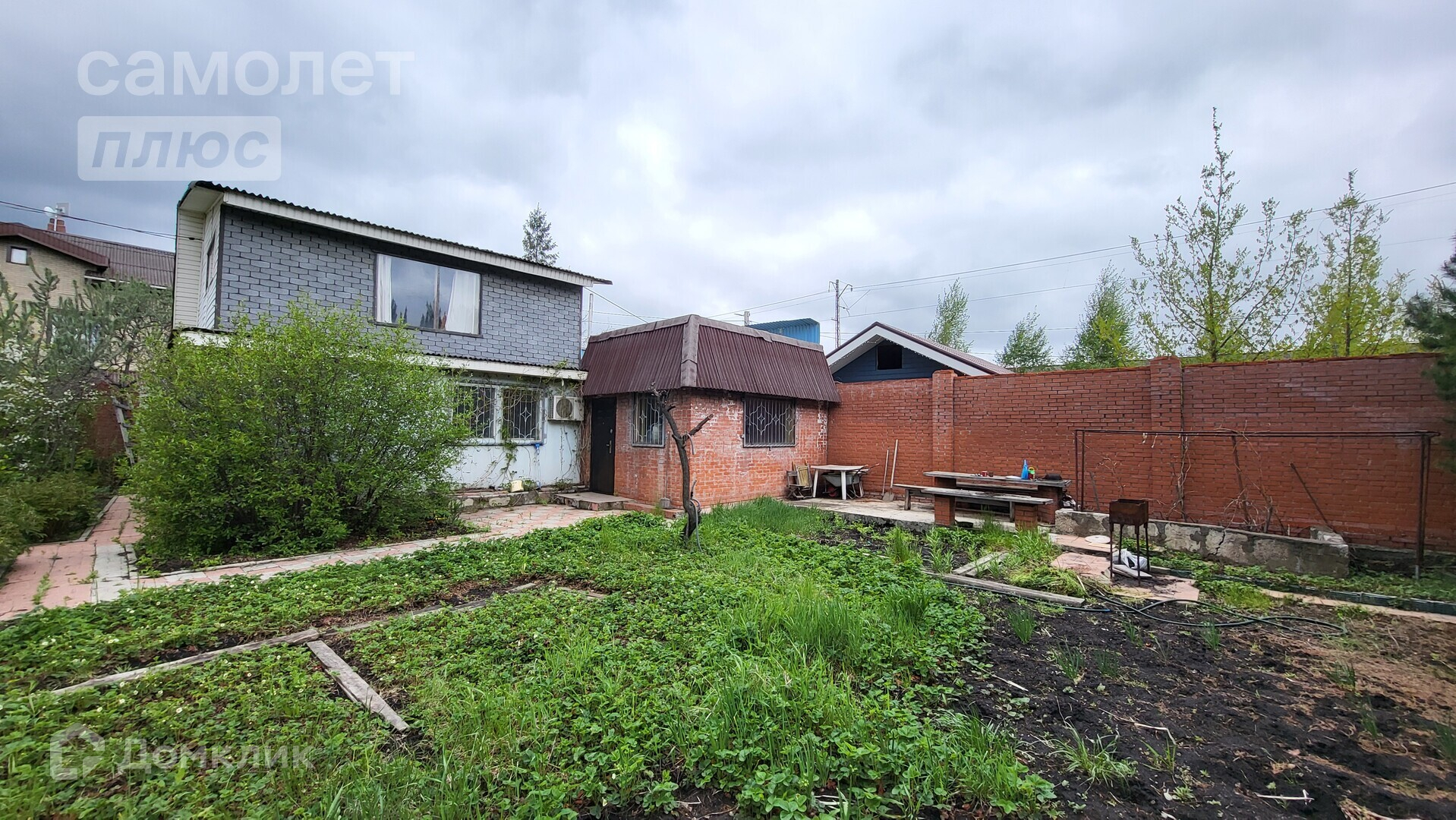 -Территория дома с улицы огорожена кирпичным высоким забором.