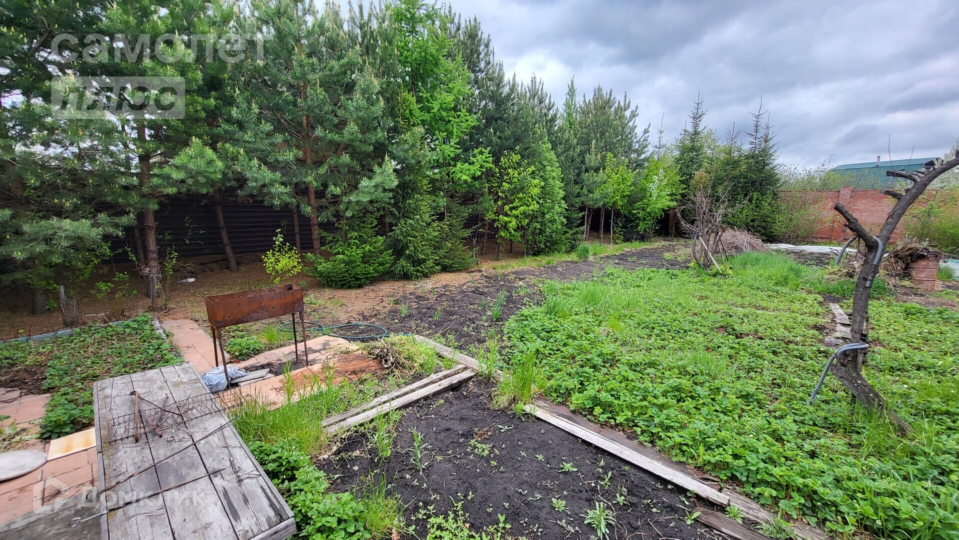 На участке посадки: Туя, яблони, красная смородина, вишня, малина, жимолость, груша конференция.