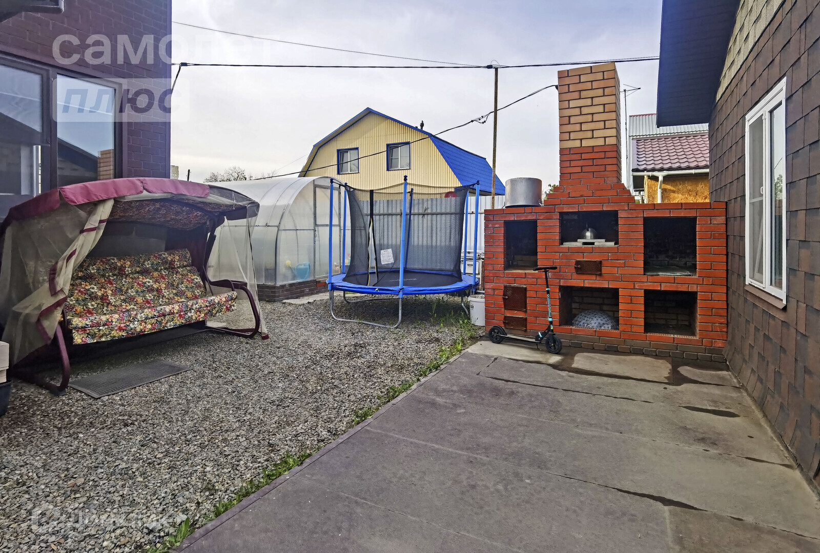 - имеется гриль зона, теплица и бассейн