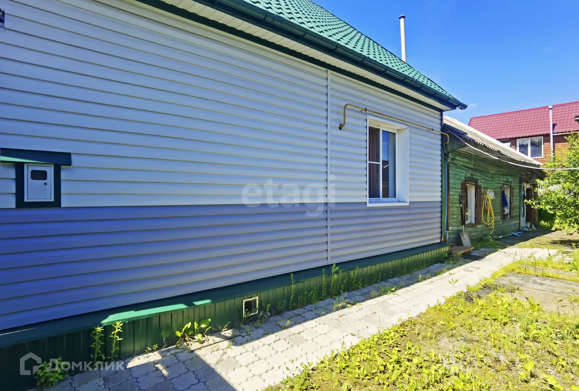 Площадь второго дома -41 кв. м. На участке есть баня, навес. Имеется не большой огород: малина, смородина, вишня.Во двор можно поставить автомобиль. Двор частично выложен плиткой, остальное мелкий щебень. Улица очень широкая, асфальтированная, подъезд к дому от дороги засыпан асфальтовой крошкой. У дома стоит качеля и эстакада для вашего авто.
