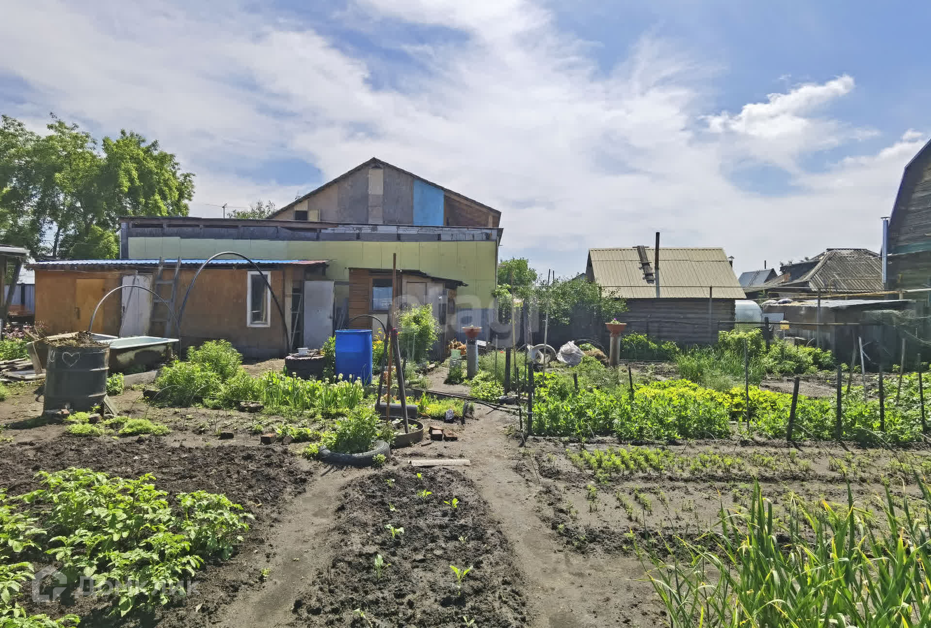 На участке ухоженный огород с очень плодородной землей, колодец для полива, участок перед домом -1 сотка под картофель.