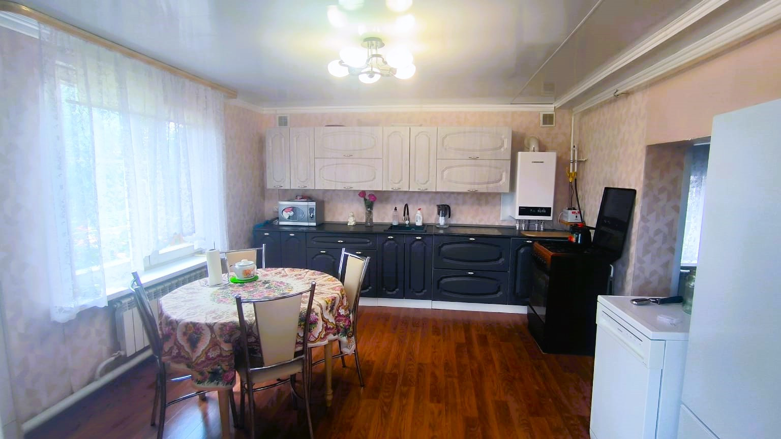 Дом светлый,теплый,благоустроенный, все коммуникации заведены в дом: Центральная вода,газовое отопление, электроснабжение, центральная канализация. Просторная кухня 14.7. Две спальни - 8.3, 5.5, зал - 18.2, санузел. В доме остается частично мебель. Имеется два погреба. Один дома, второй погреб на улице.огород 3.9 м2. обработан с плодородной почвой. Хозяйственные постройки: баня, постройка для хранение для инвентаря