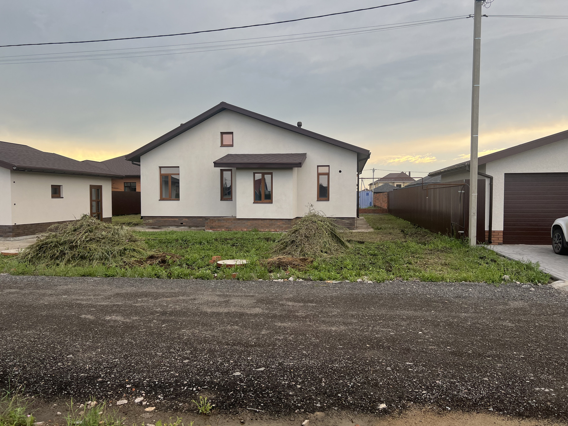 На чистой продаже дом  по адресу 3 Приветливый пер. 12, с  участком площадью 603 кв.м. Общая площaдь дома - 136 м.кв., в доме черновая отделка, все оштукатурено. Также имеется гараж общей площадью  – 38,4 кв.м. (6,03мх6,39м) оборудован автоматическими воротами. Дом и гараж поcтpоeны из кирпичa и облицoваны декоративной штукатуркой. Улица жилая, дорога асфальт. Центральные канализация и водопровод, электричество подведено, счетчик установлен. Договор на подключение газа заключен. За наличный расчет - хороший торг.