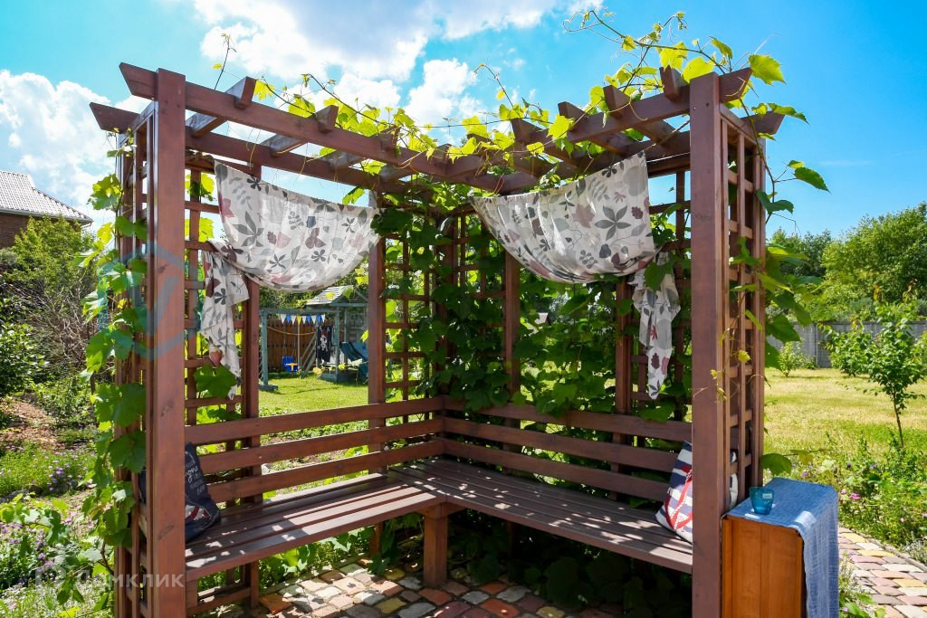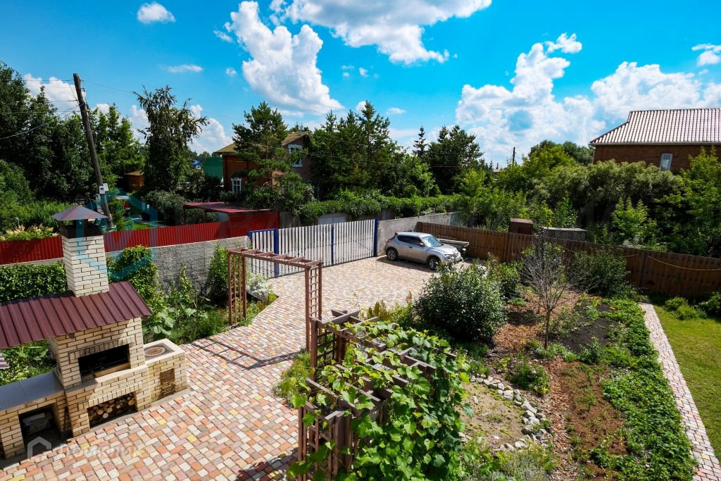 мангальная зона с виноградной беседкой, тупиковая широкая аллея, во дворе парковка на 4 машины.