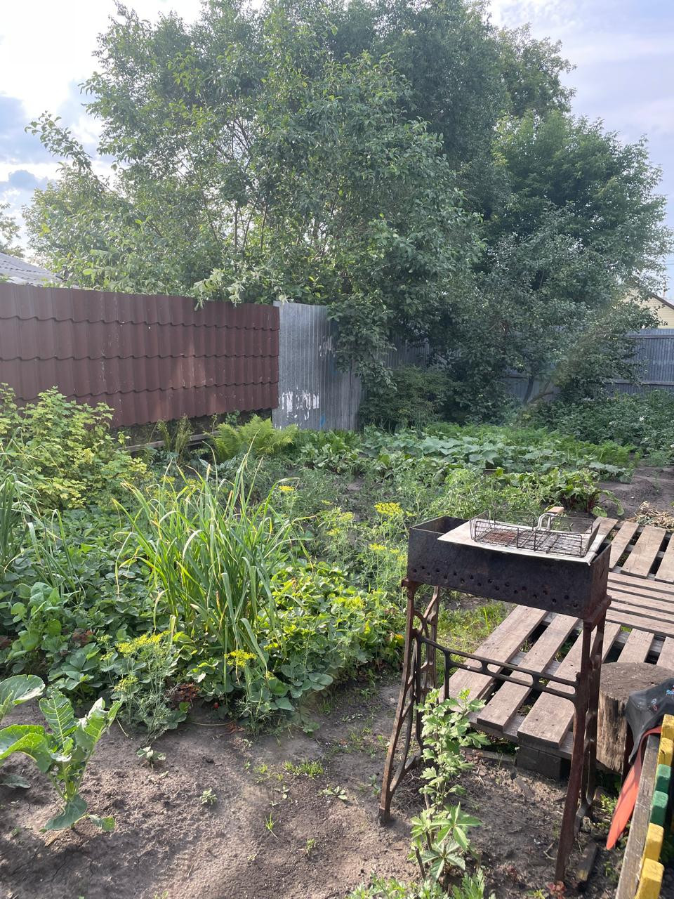 Огород с посадками, баня, летняя кухня, гараж кирпичный  со смотровой ямой.