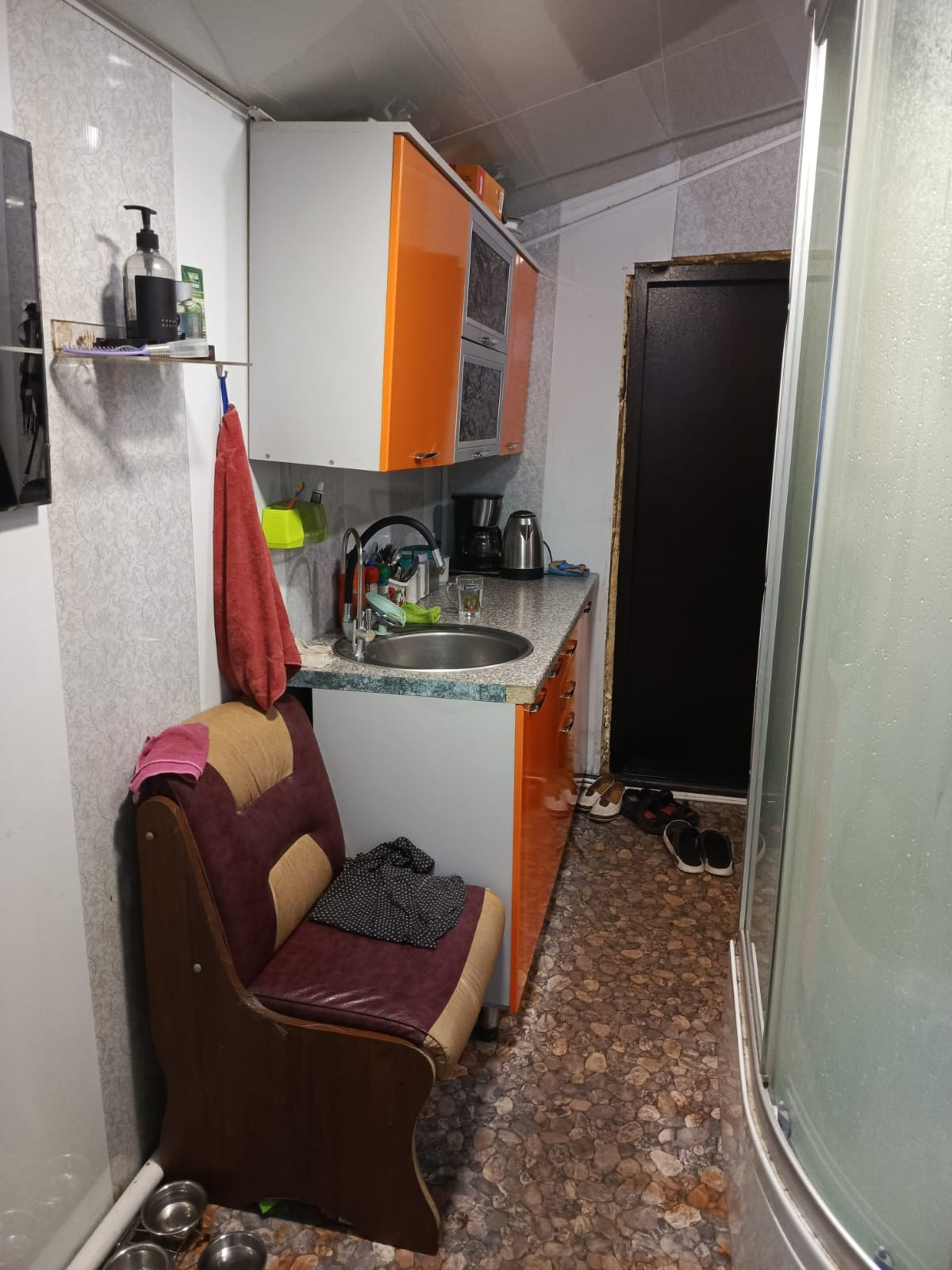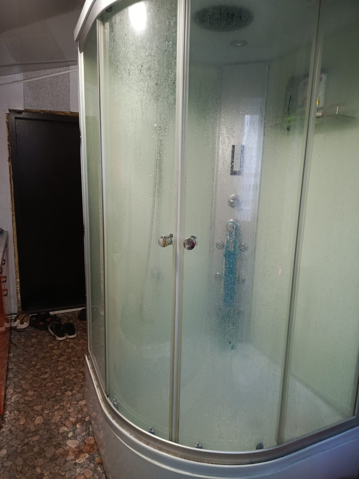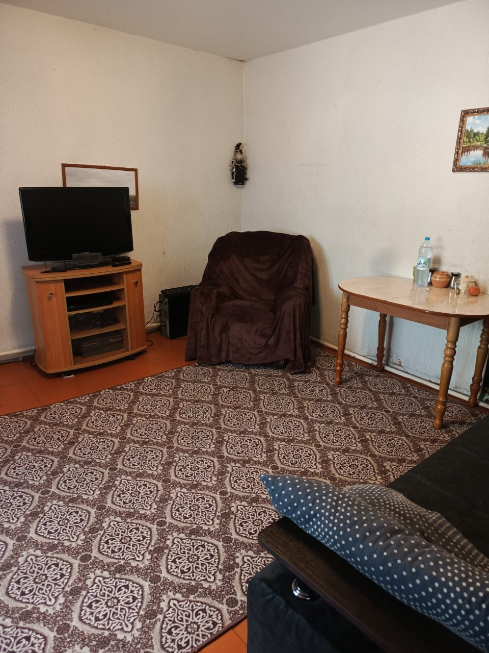 1-й дом ,1/2 брус, 60/40/8 . 3 комнаты,гостинная,кухня,сан.узел,душевая кабина.