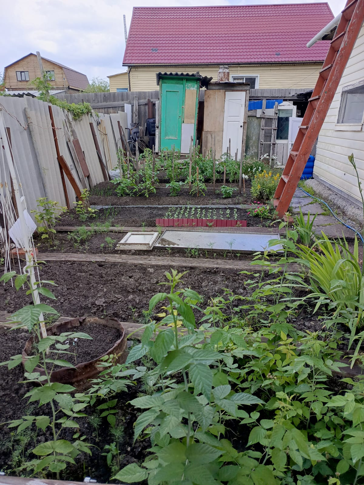 Ухоженный сухой участок с посадками.