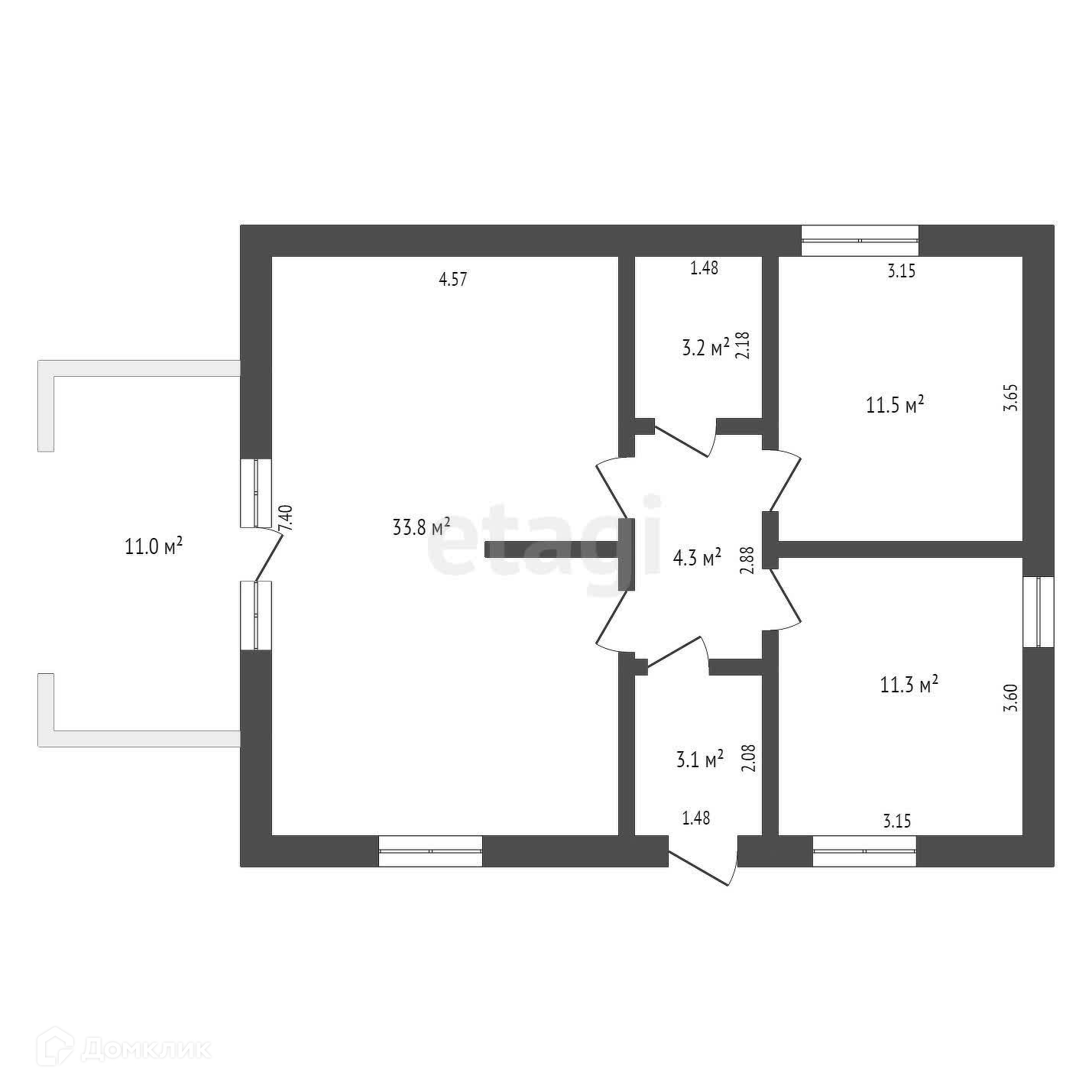 Материал стен - КИРПИЧ. Выхoд с гостиной на ТЕРАССУ!