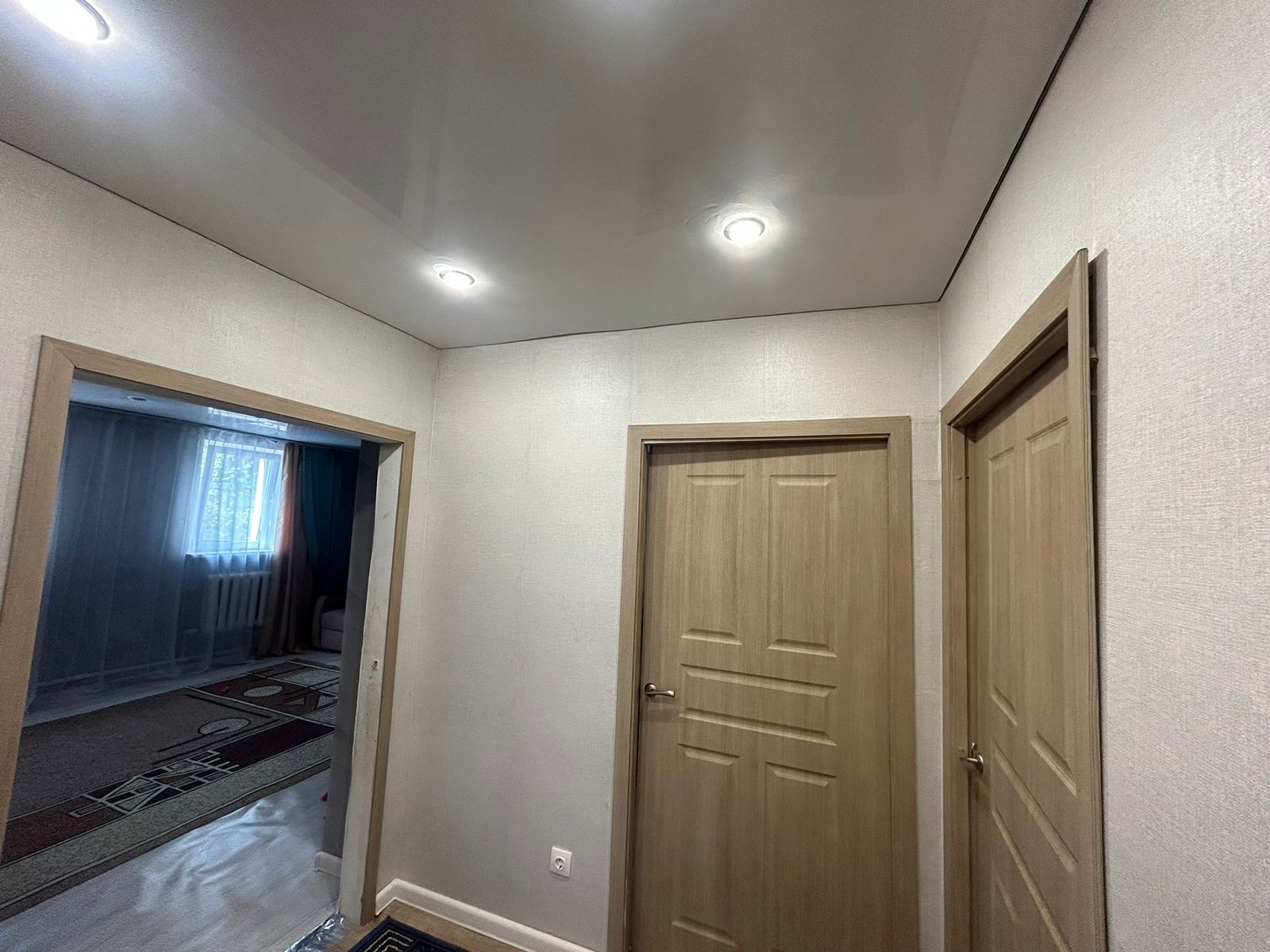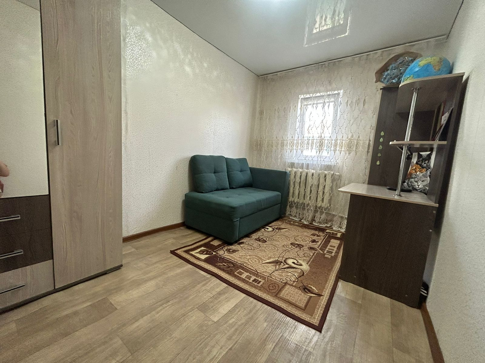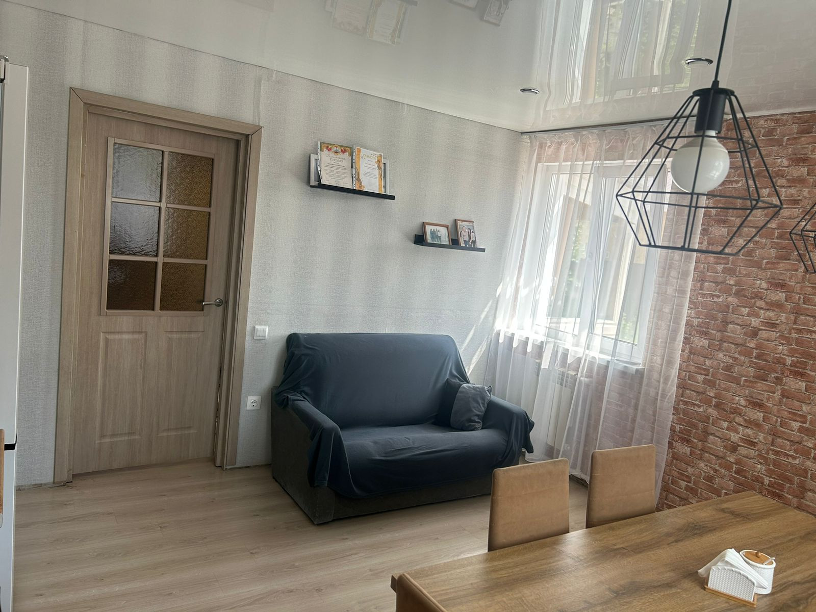 Во всём доме натяжные потолки, на полу ламинат/линолеум, ванная комната выложена плиткой, окна ПВХ, счетчики. Мебель остаётся частично.