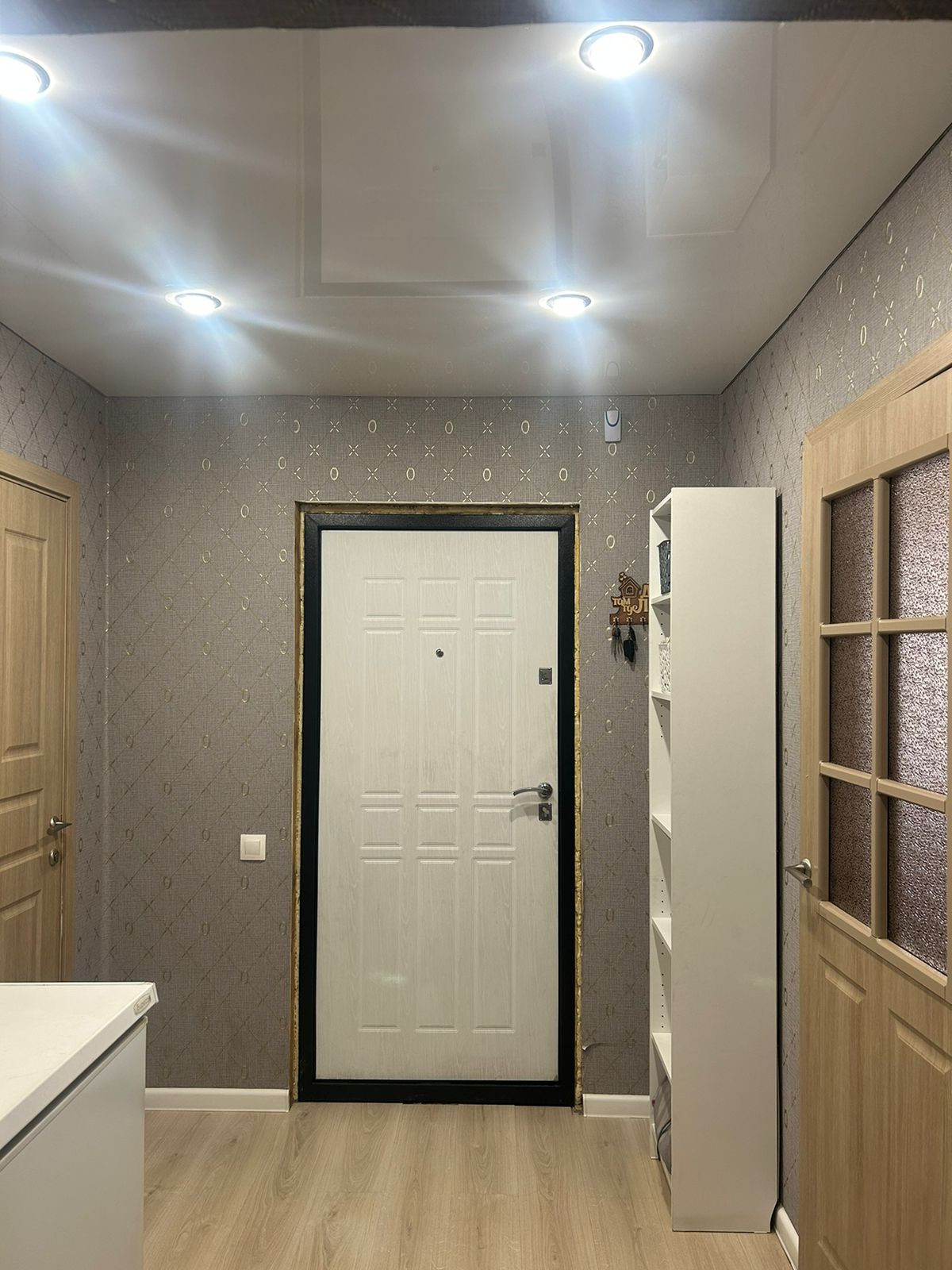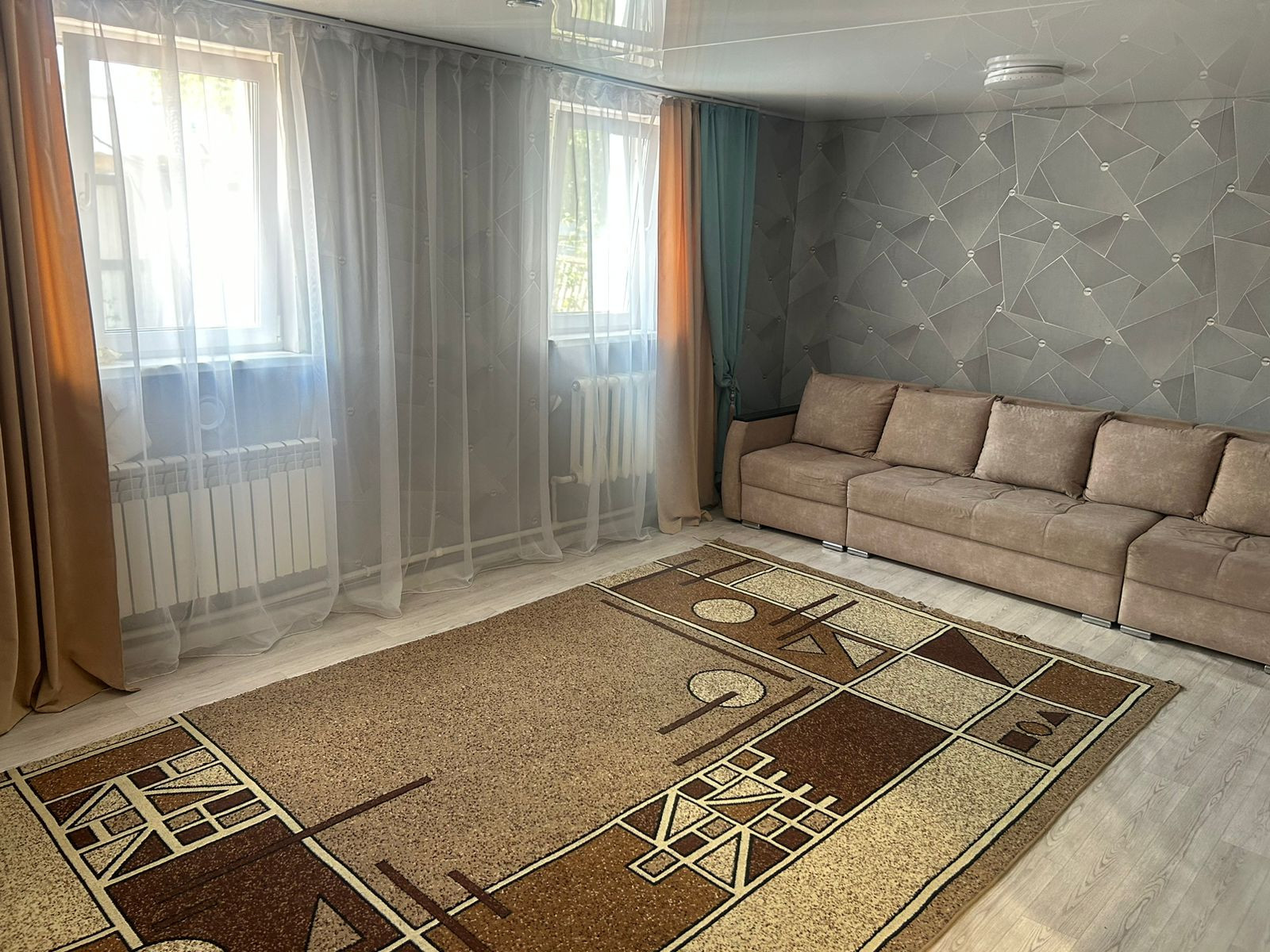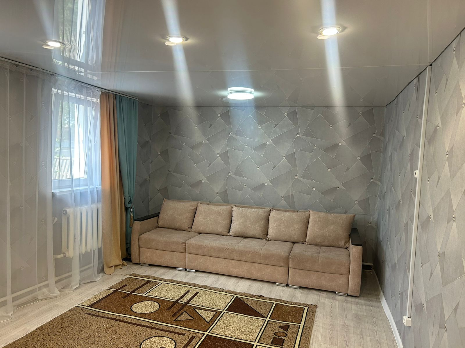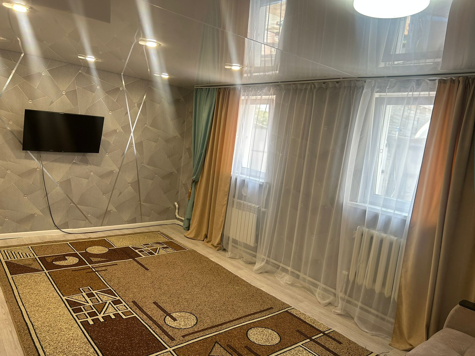 Во всём доме натяжные потолки, на полу ламинат/линолеум, ванная комната выложена плиткой, окна ПВХ, счетчики. Мебель остаётся частично.