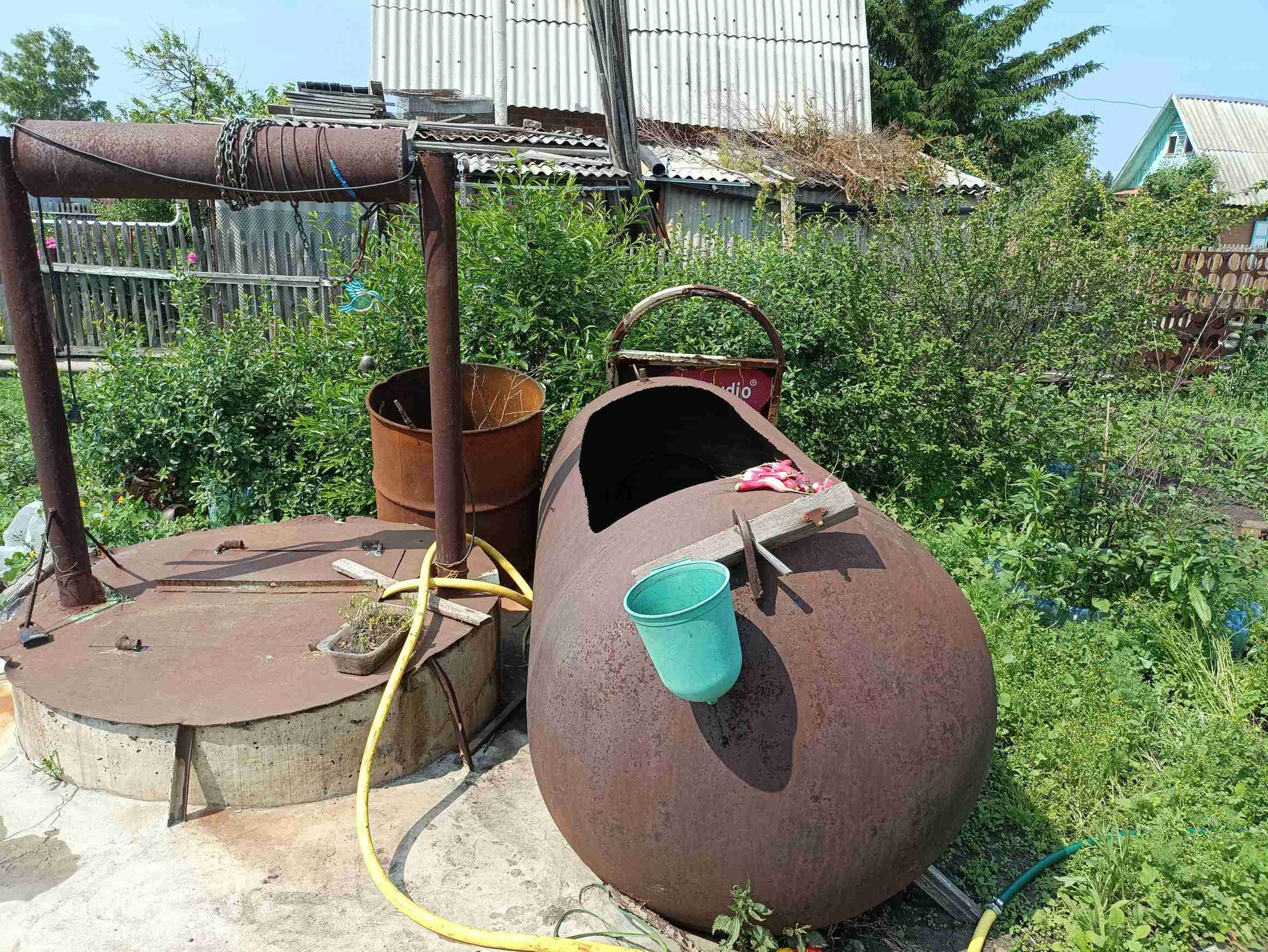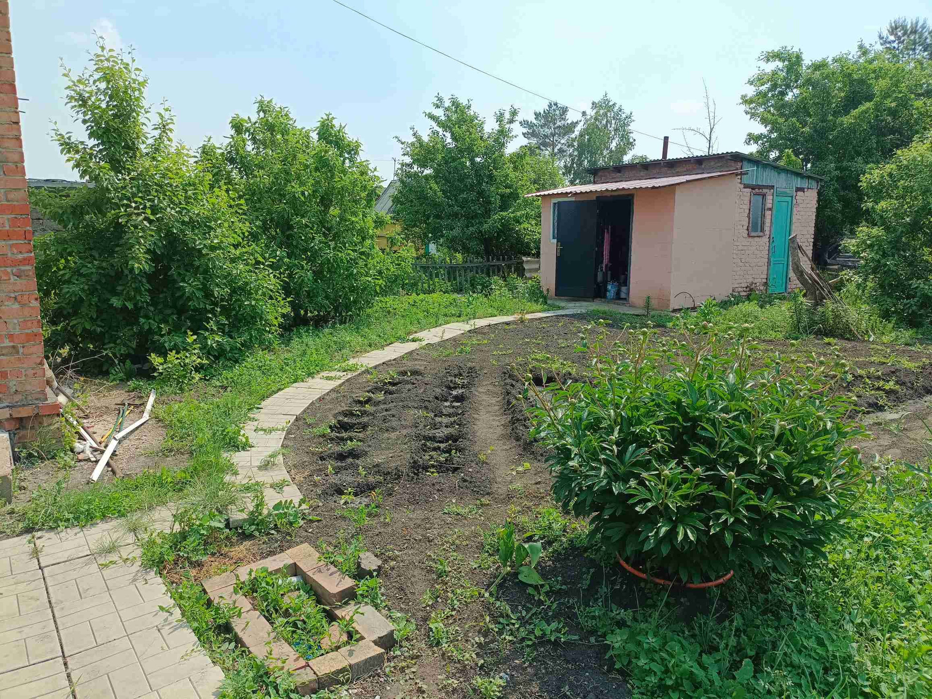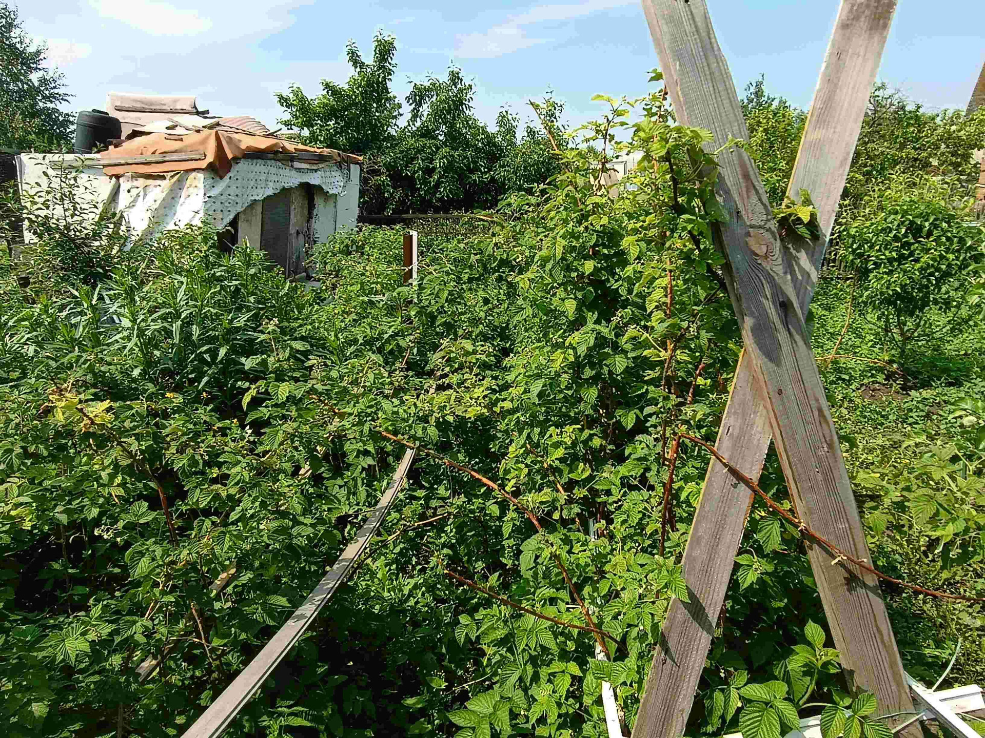 Посадки: вишни, 2- груши, 4- плодоносящие яблони, малина, виктория, калина, боярышник, красная и черная смородина, жимолость.