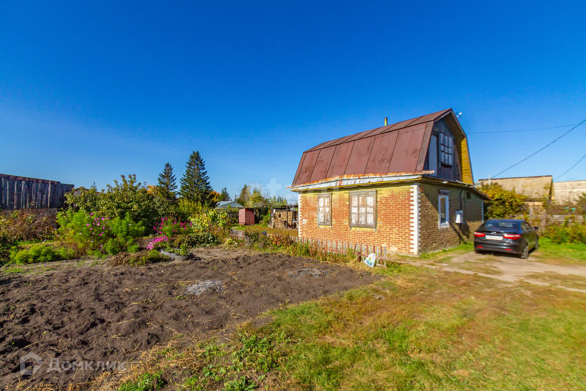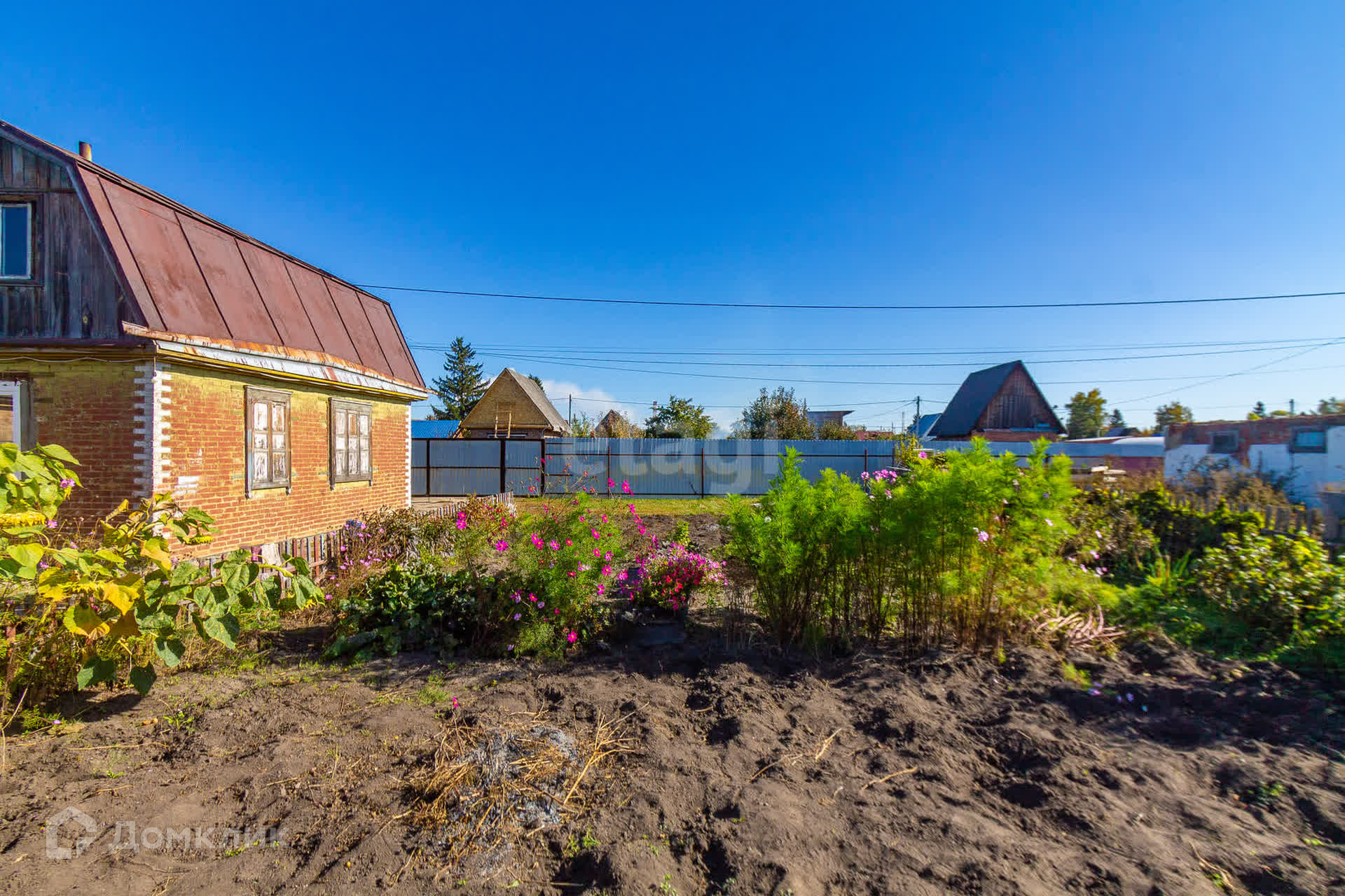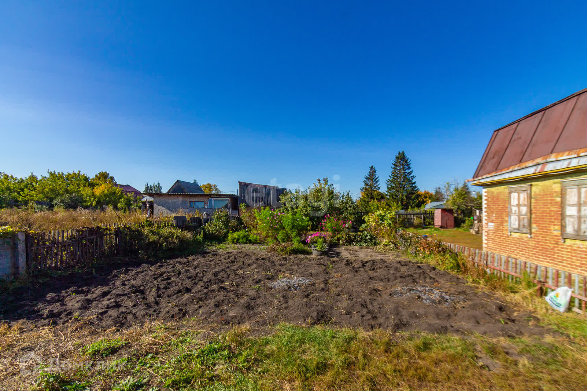 Участок- 6,36 соток- правильной прямоугольной формы. Размежёван и огорожен забором из дерева, ворота из профлиста. Огород занимает всего лишь 1,5 сотки. Но земля настолько плодородная, что урожая, собранного с участка, хватает на целый год. Также растут яблони и груши, вишня и смородина, крыжовник.