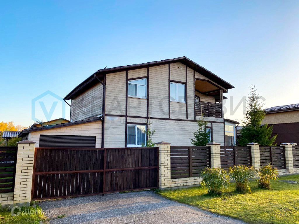 На земельном участке площадью 8 соток расположены коттедж 143.3 кв. м, два гаража ( один утеплен ), банный комплекс с местом для отдыха, беседка и хоз постройки.