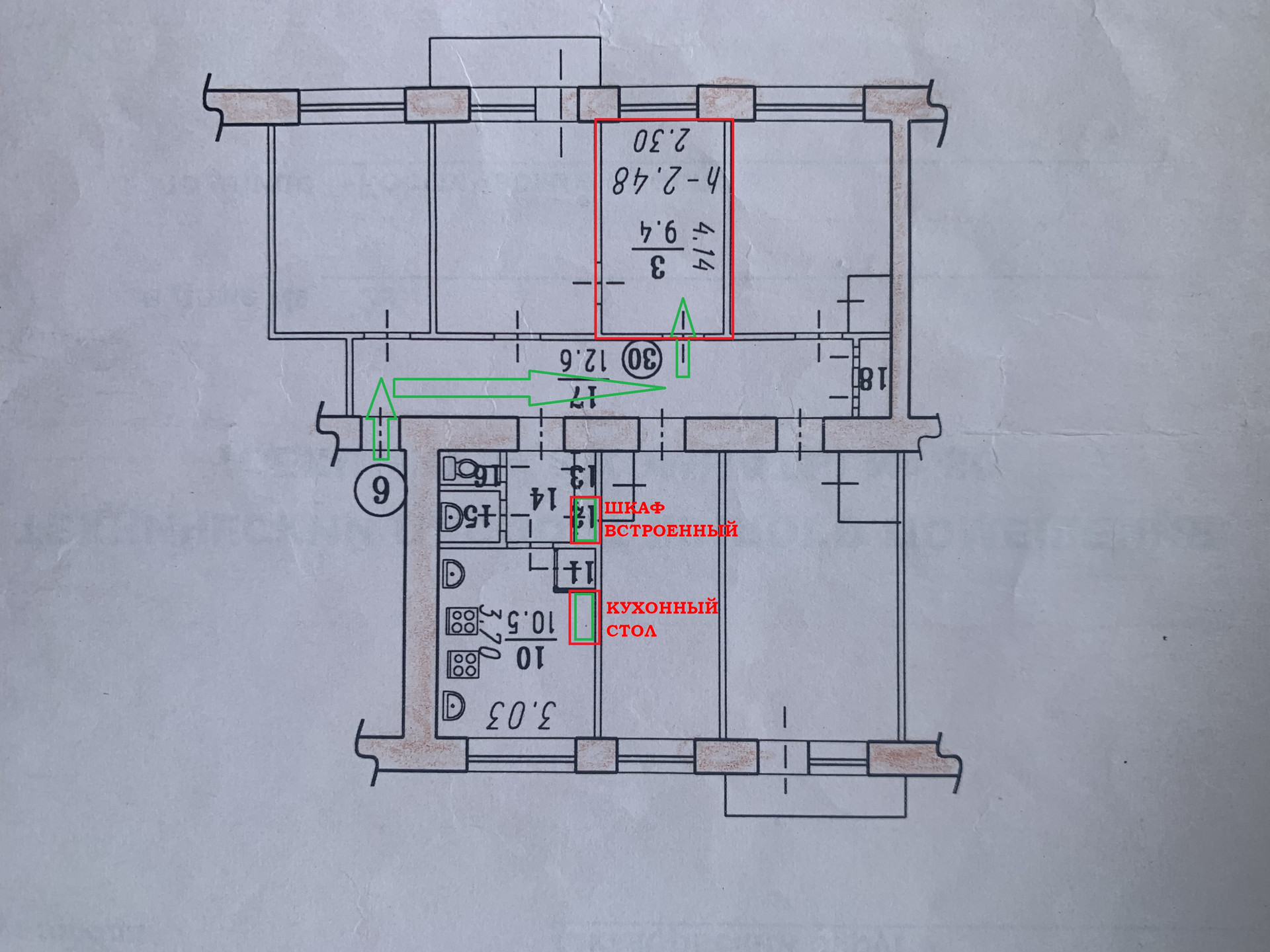 Высота потолков 2.48 м