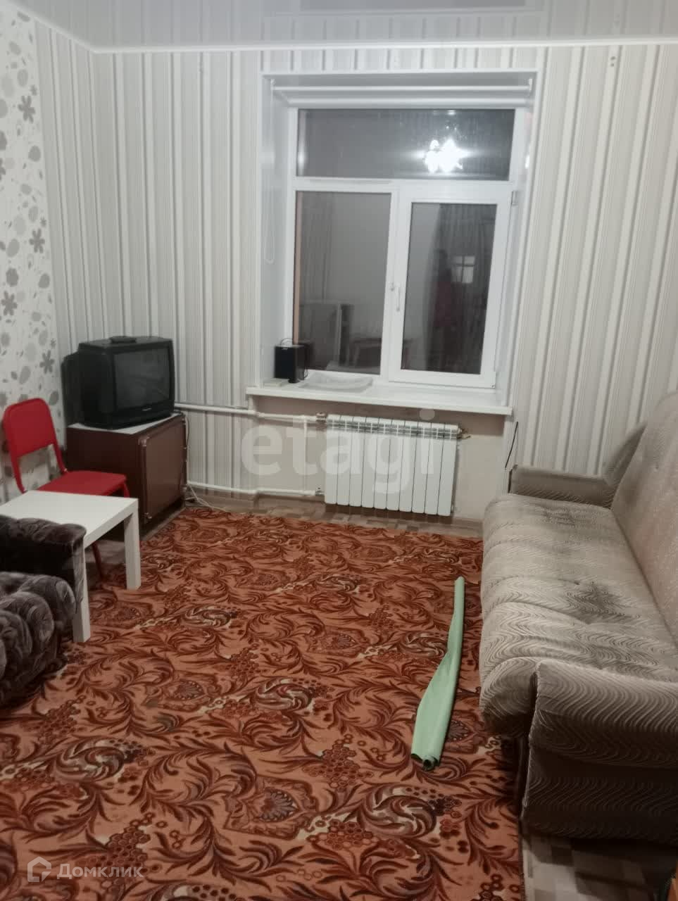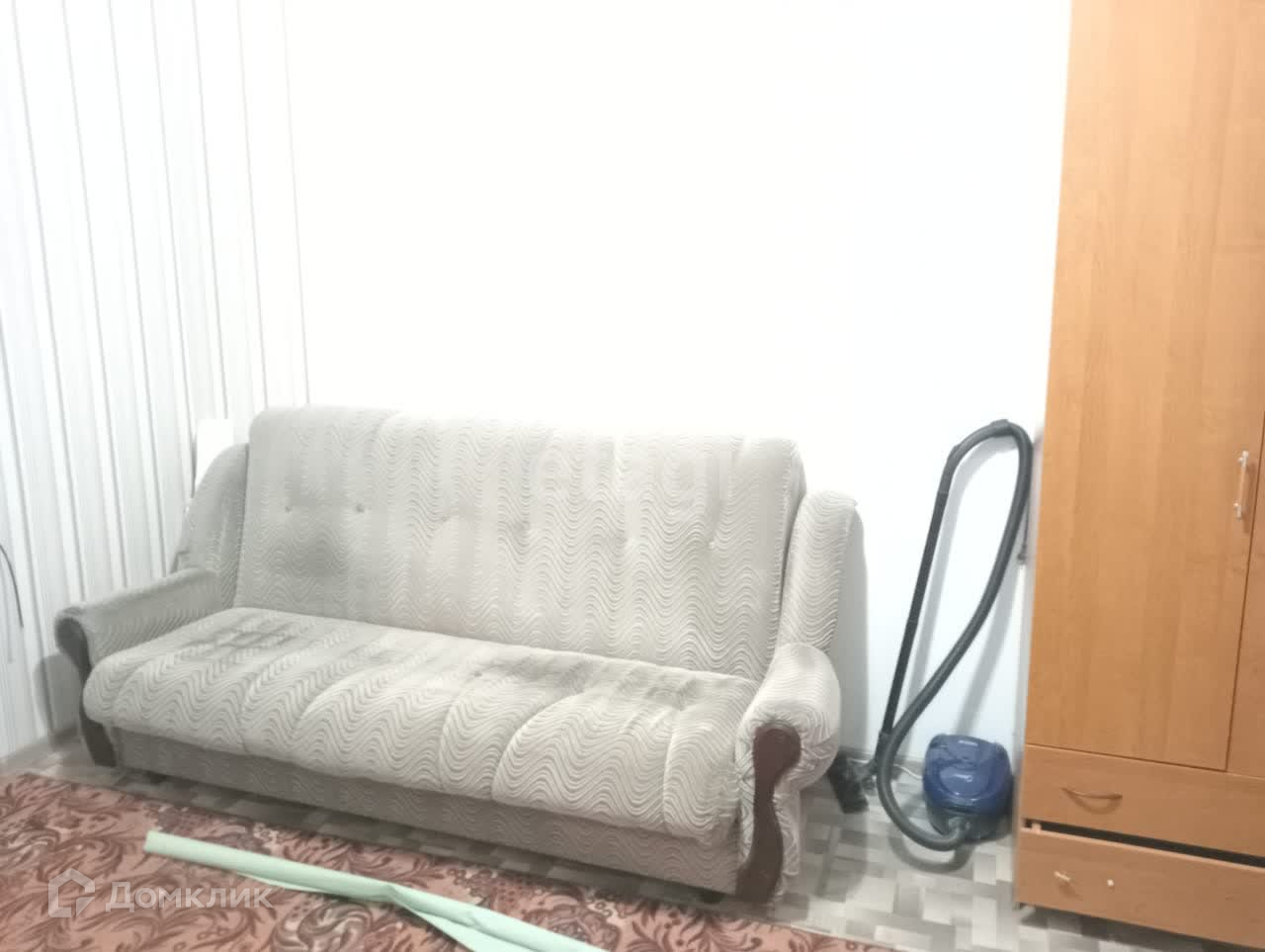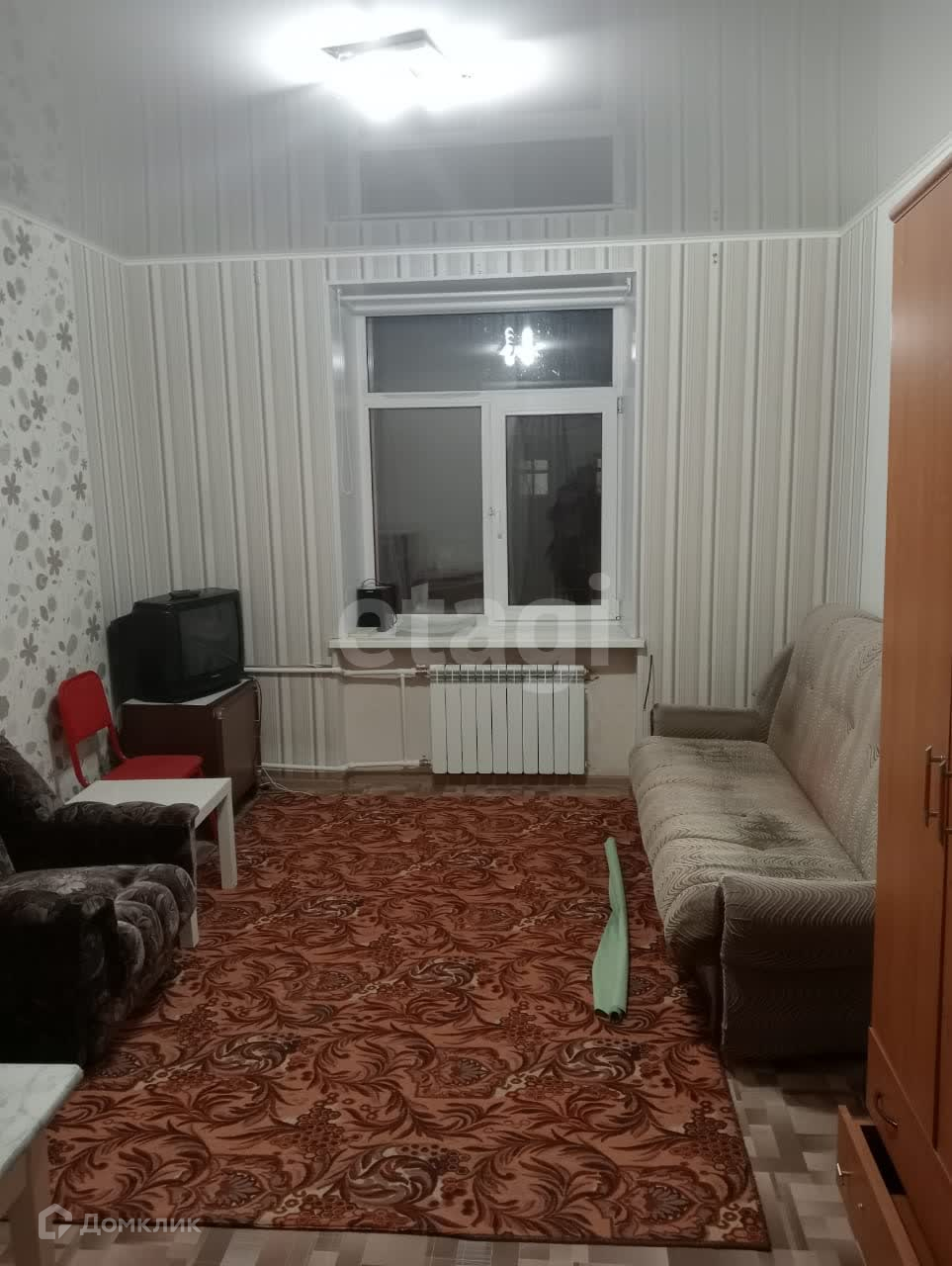 В комнате выровнены стены, наклеены свежие обои, поменяна проводка, розетки, произведена замена труб и радиатора. Окно ПВХ, на полу - линолеум, потолок натяжной. 2 двери - металлическая и деревянная. В комнату можно провести воду. Выделено небольшое помещение под кухню.