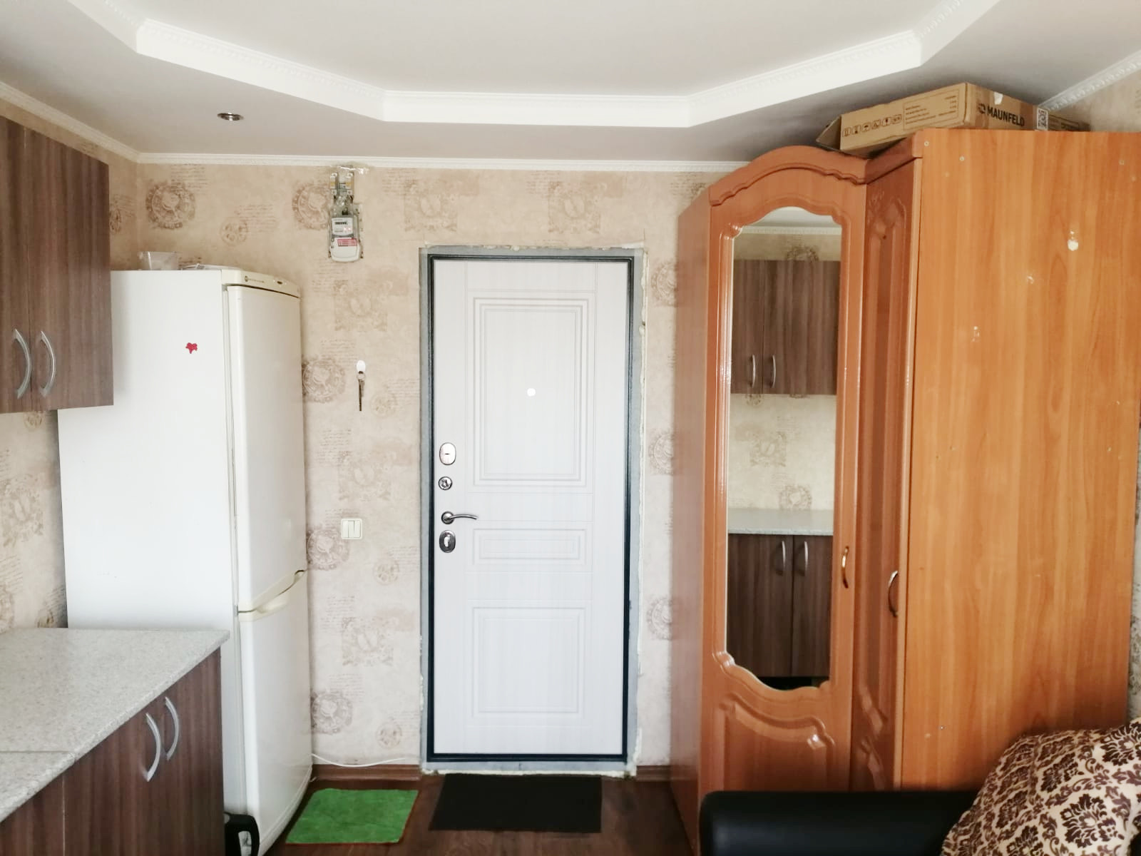 Комната с хорошим, свежим ремонтом: окно ПВХ, новые обои, потолок подвесной из гипсокартона с точечными светильниками. Есть возможность завести в комнату воду. Секция на 6 комнат,  места общего пользования в приличном состоянии. Соседи спокойные, дружелюбные.