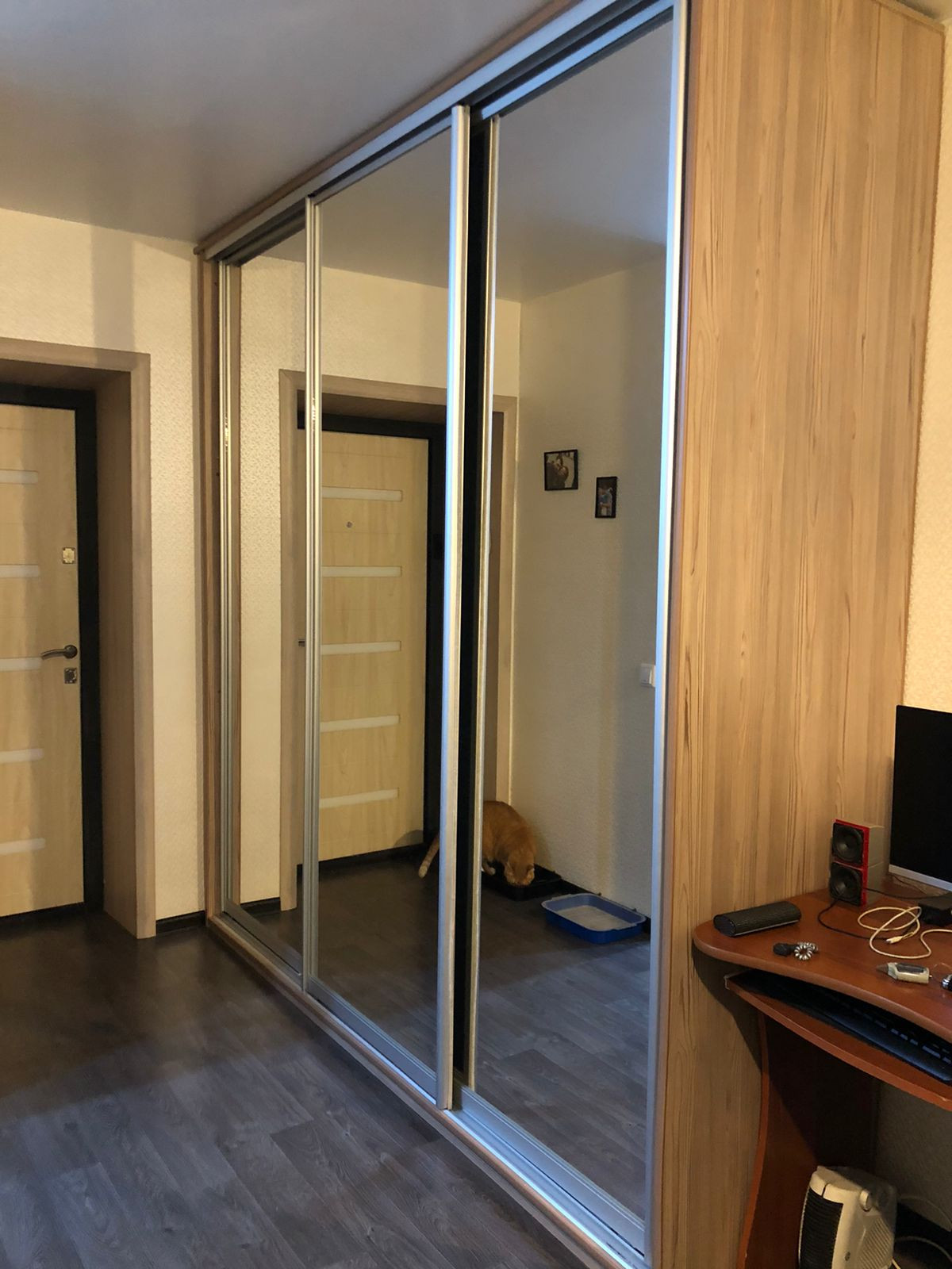 Комната не угловая, на 2 этаже трехэтажного кирпичного дома, был сделан капитальный ремонт, вся мебель встроенная и выполнена на заказ, установлен и опломбирован новый электросчетчик, заменен радиатор, пластиковые окна, установлена хорошая входная дверь.