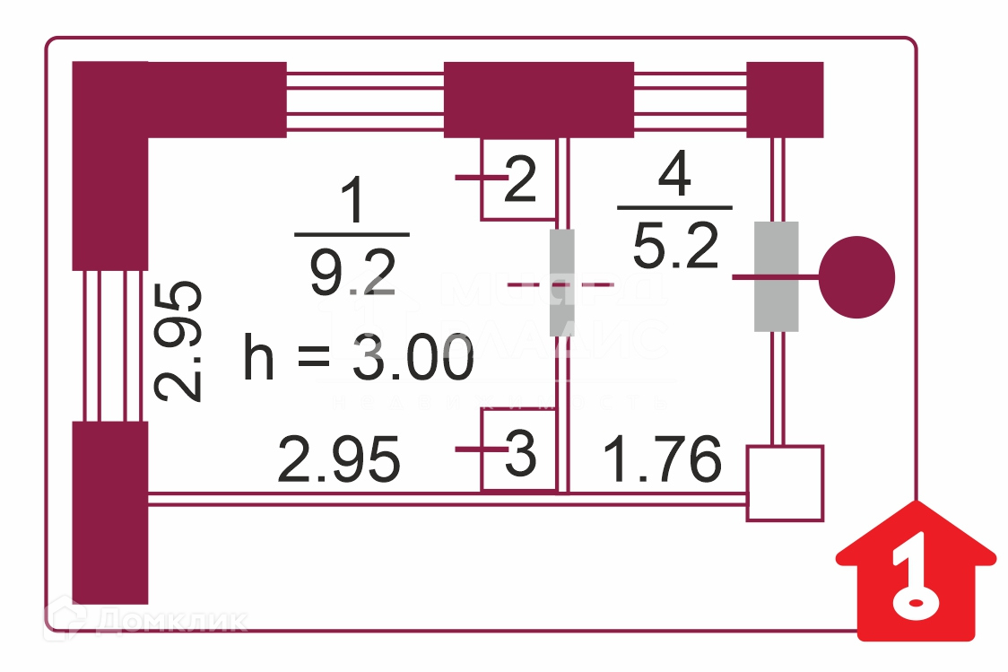 Комнат в квартире 1