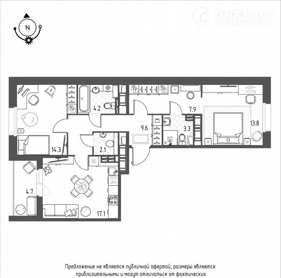 Общая площадь 74.7 м2