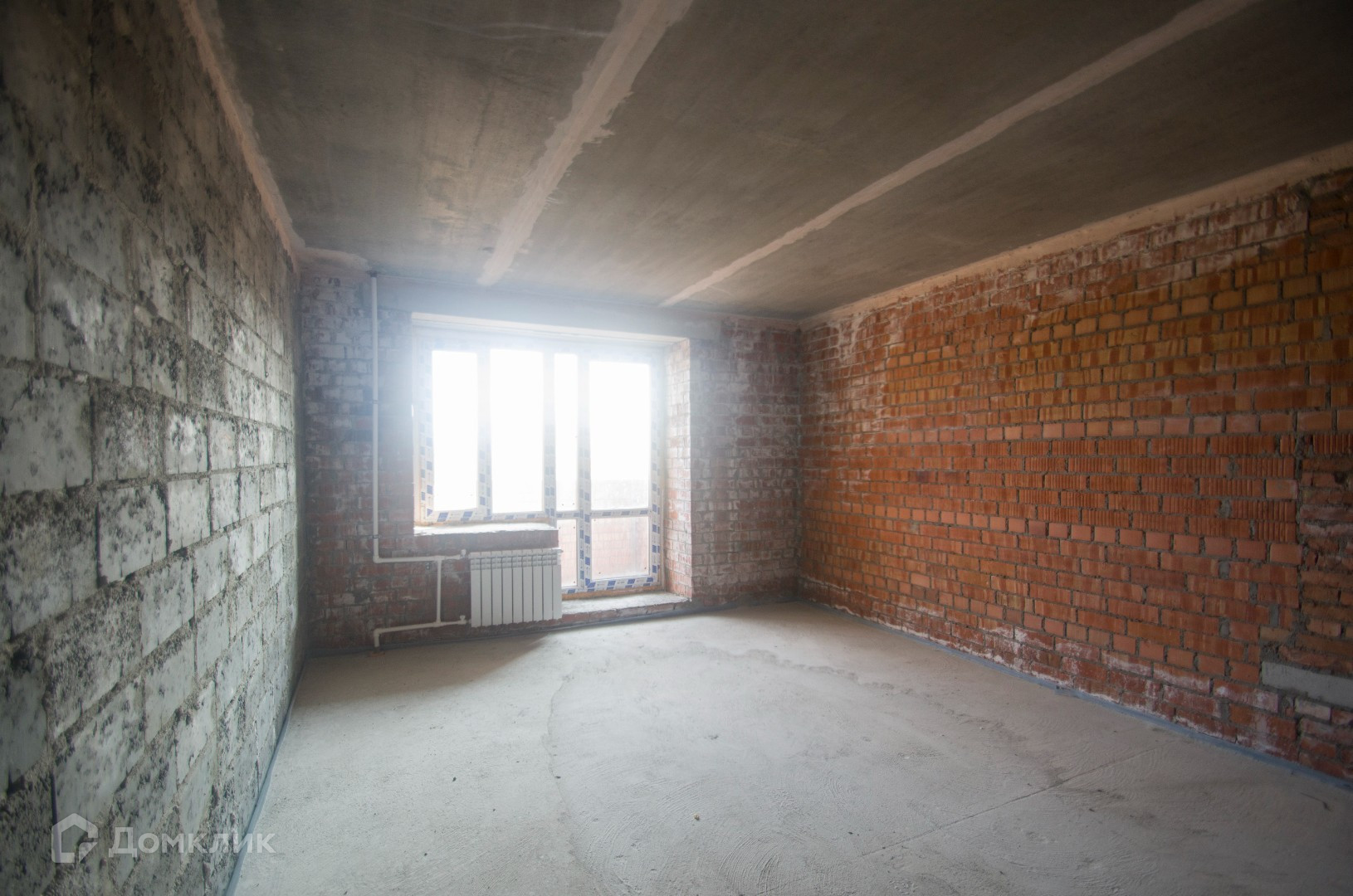 Квартира с черновой отделкой: установлен балконный блок с окном (ПВХ), смонтированы приборы отопления, в санузле установлены приборы учета, выполнена стяжка пола.